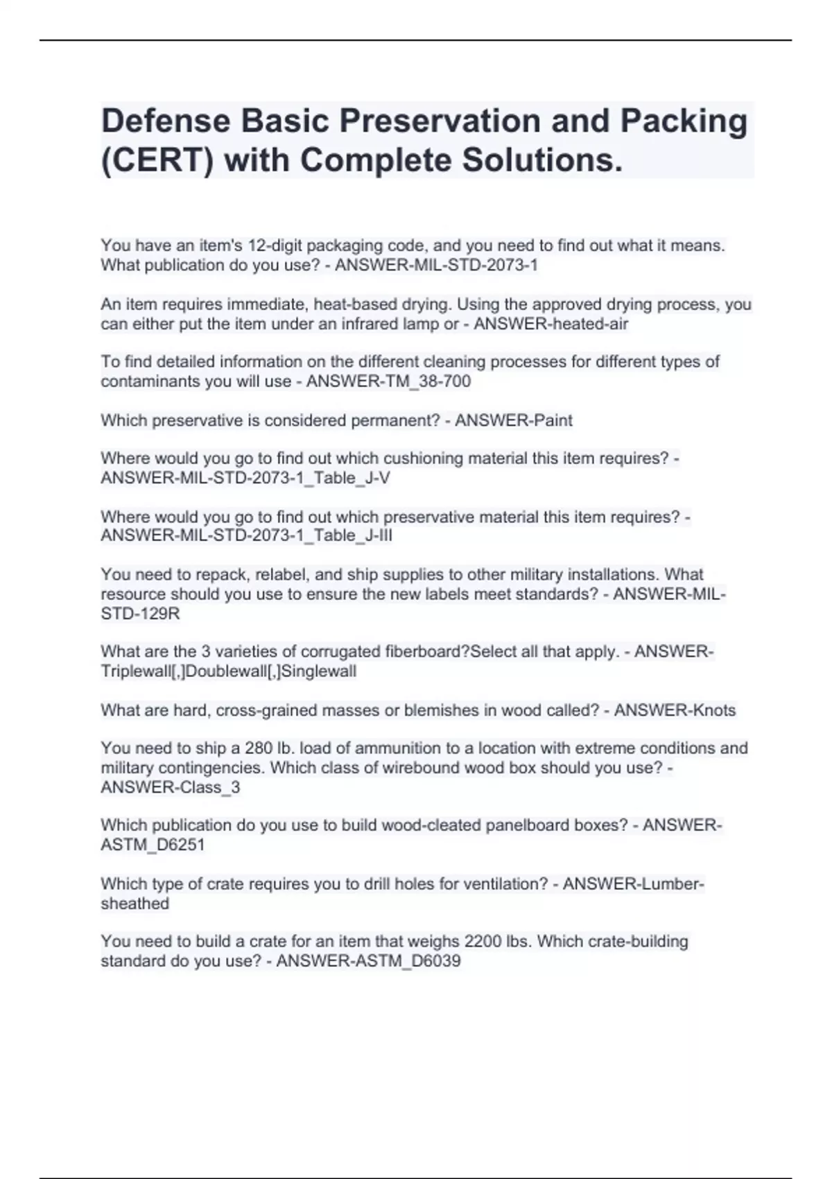 Packaging and Preservation EXAM PACKAGE DEAL (BUNDLE) WITH COMPLETE QUESTIONS AND ANSWERS 100% ACCURATE EXAM PACKAGE DEAL (BUNDLE) WITH COMPLETE QUESTIONS AND ANSWERS 100% ACCURATE