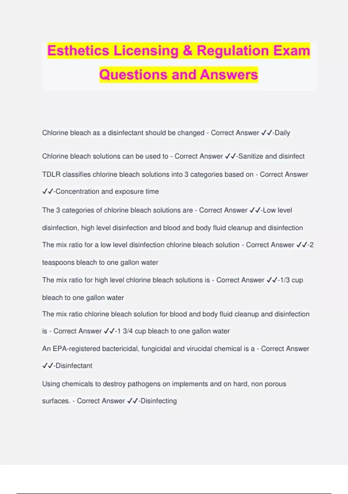 Esthetics Licensing & Regulation Exam Questions and Answers