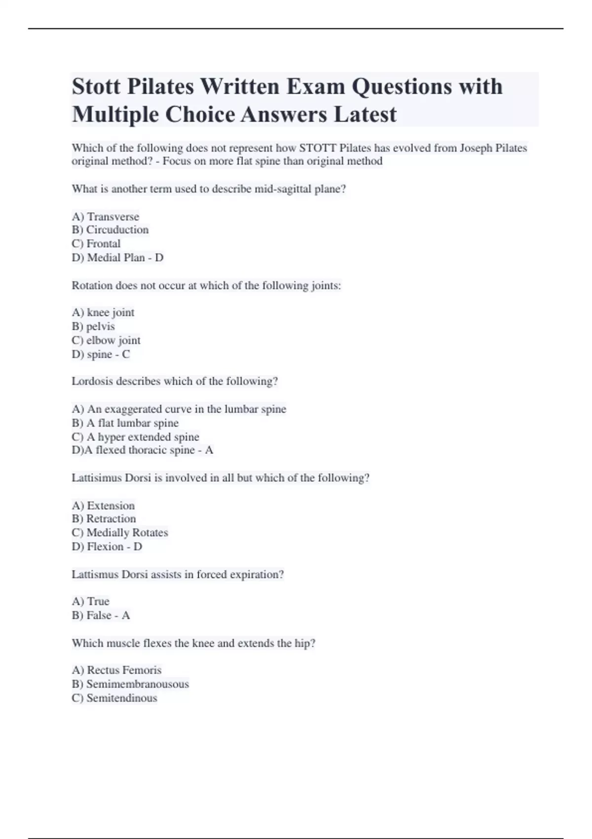 Stott Pilates Written Exam Package Deal Latest