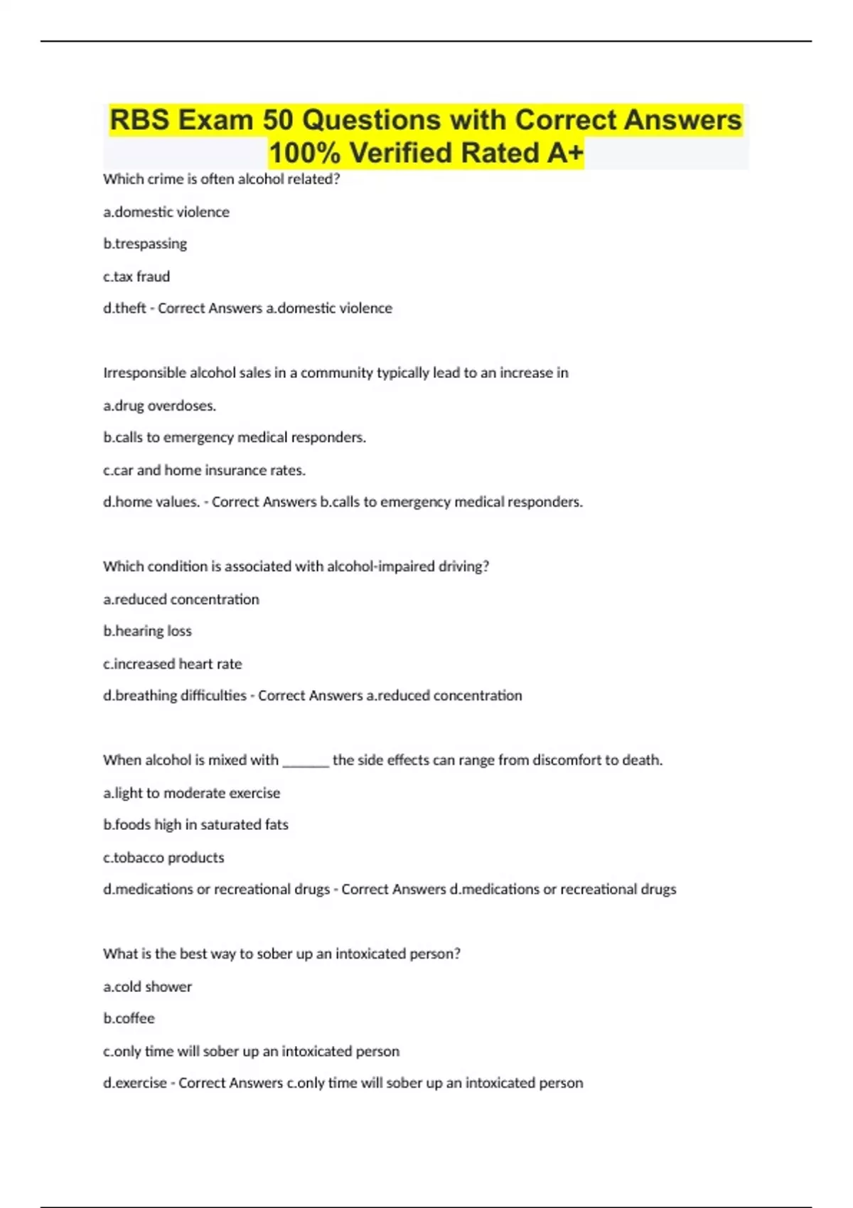 RBS and Alcohol Beverage Control (ABC) Exam Bundle with Complete Solutions 100% Verified 2024/2025