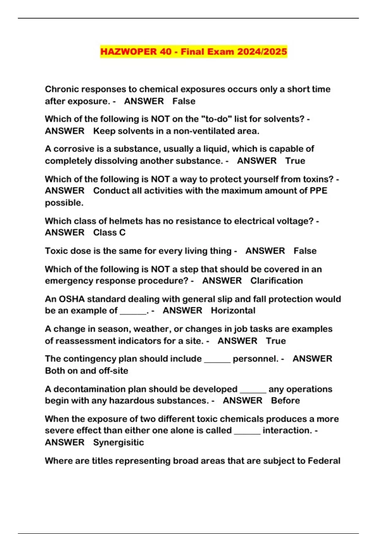 HAZWOPER 40 - Final Exam 2024/2025