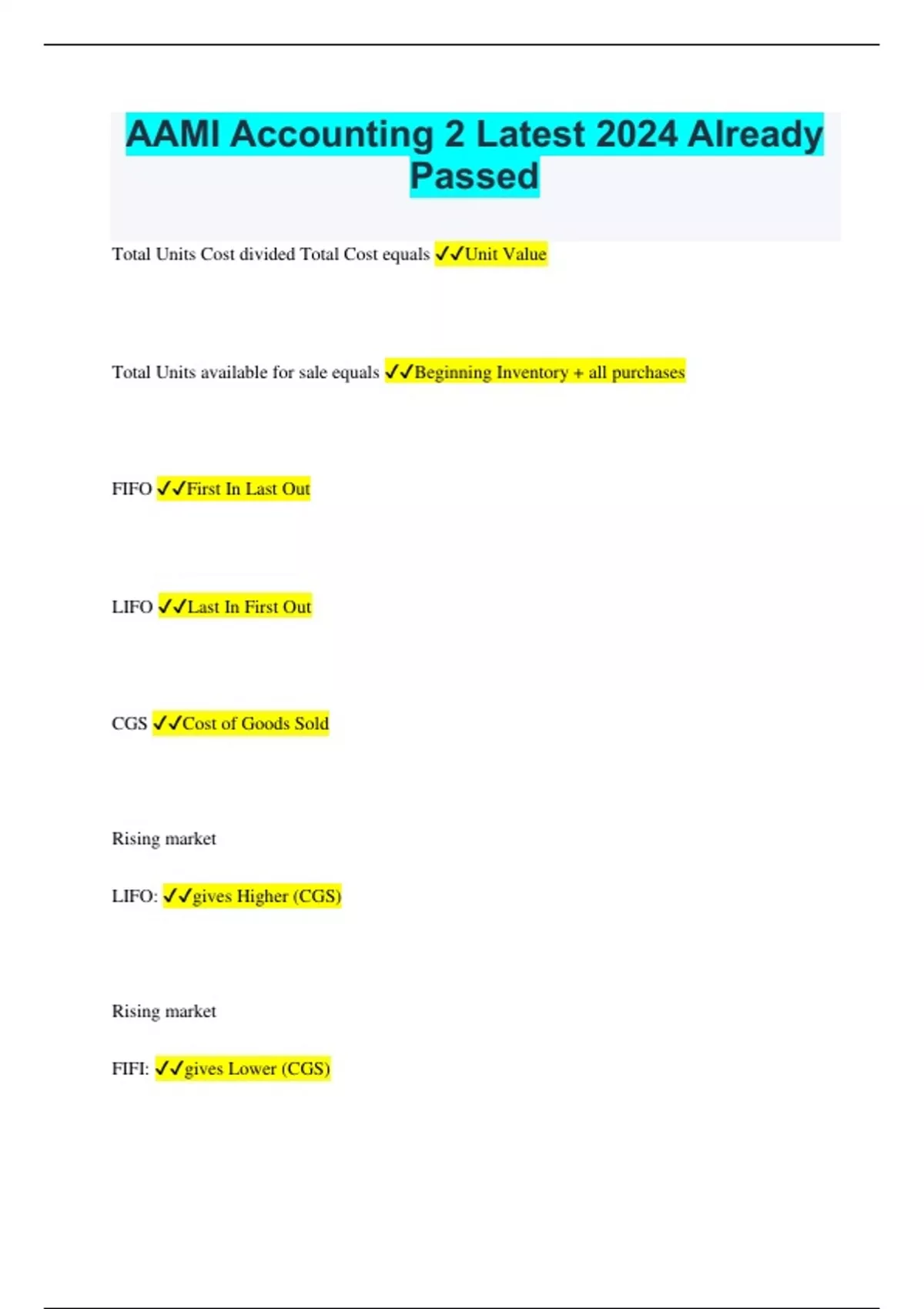 AAMI Accounting Bundled Exams Questions and Answers Latest Updates (2024/2025) 100% Pass