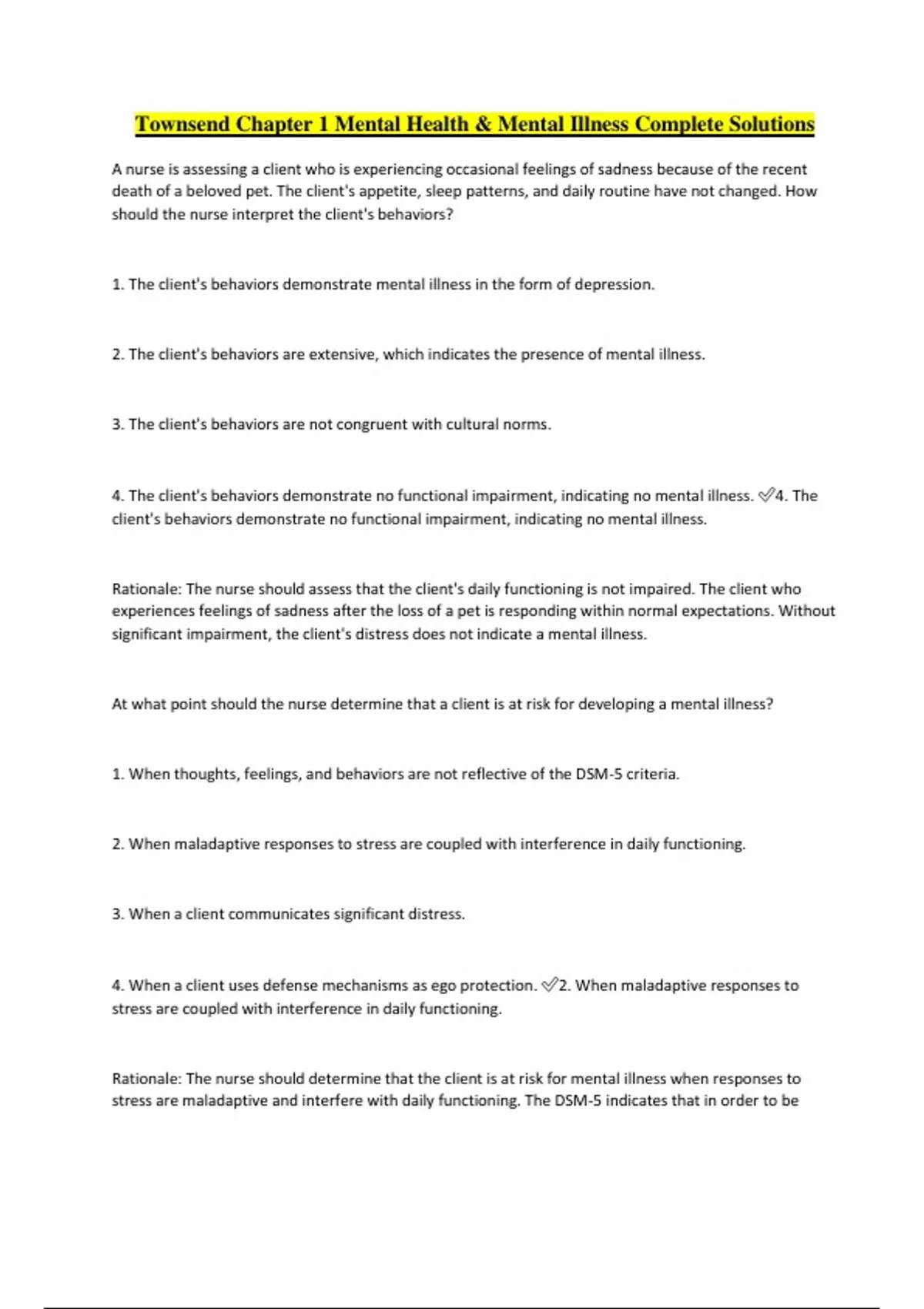 Townsend Mental Health Nursing Complete Package