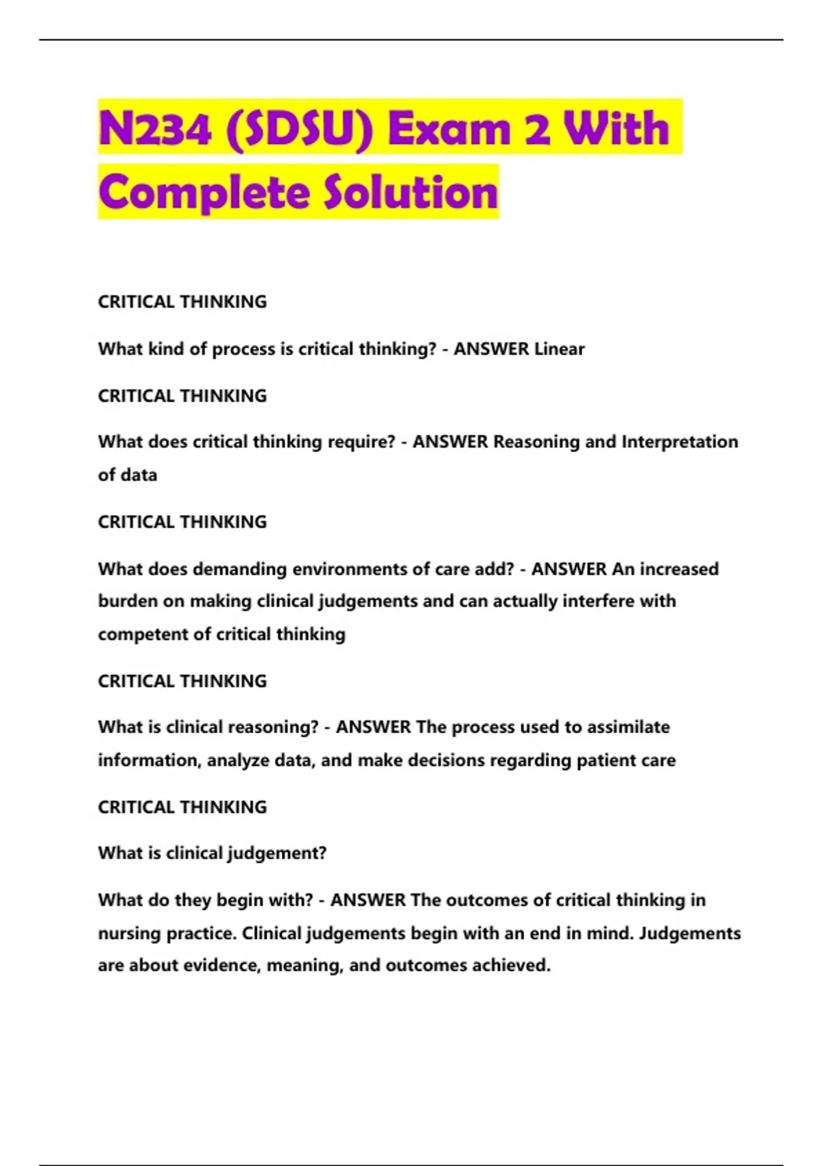 N234 BUNDLED EXAMS WITH SOLUTION