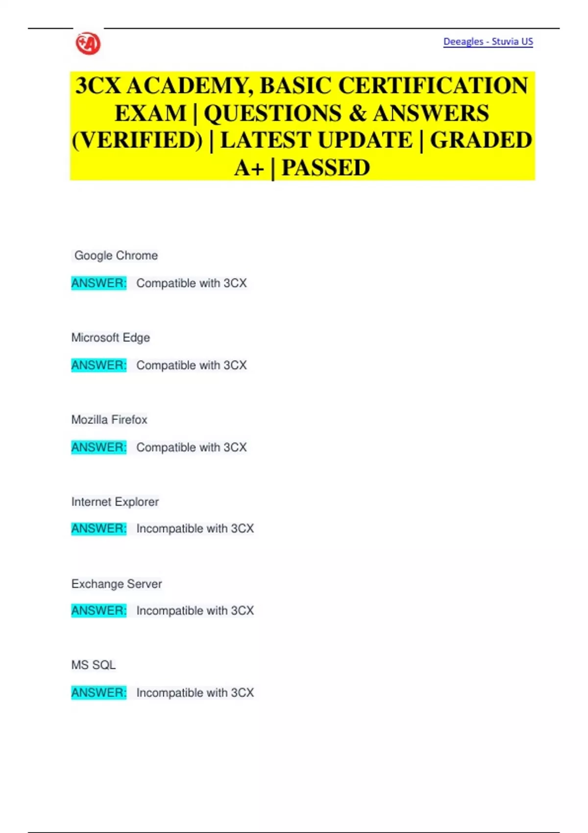 3CX BASIC CERTIFICATION EXAMS PACK | QUESTIONS & ANSWERS (VERIFIED) | LATEST UPDATE | GRADED A+ | PASSED
