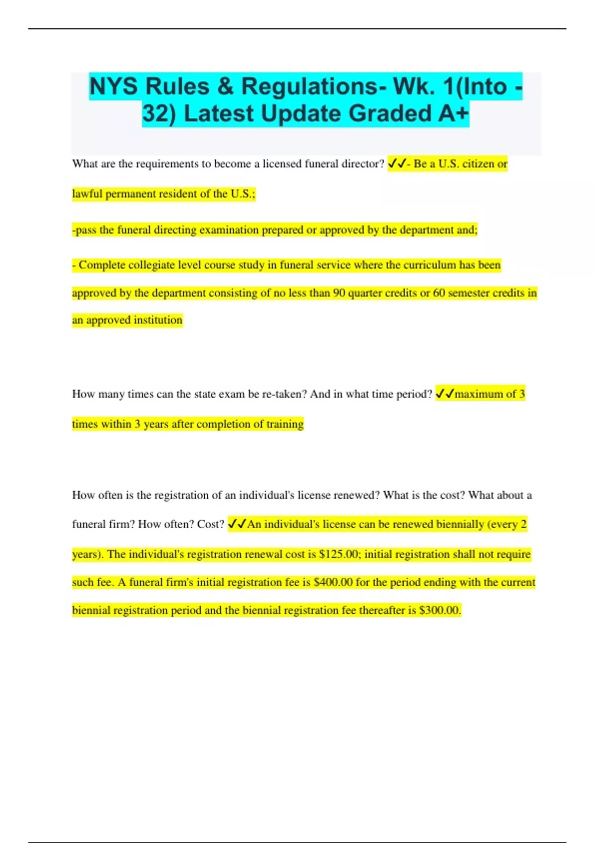 NY State (Mortuary) Law Bundled Exams Questions and Answers Latest Versions (Complete and Accurate)