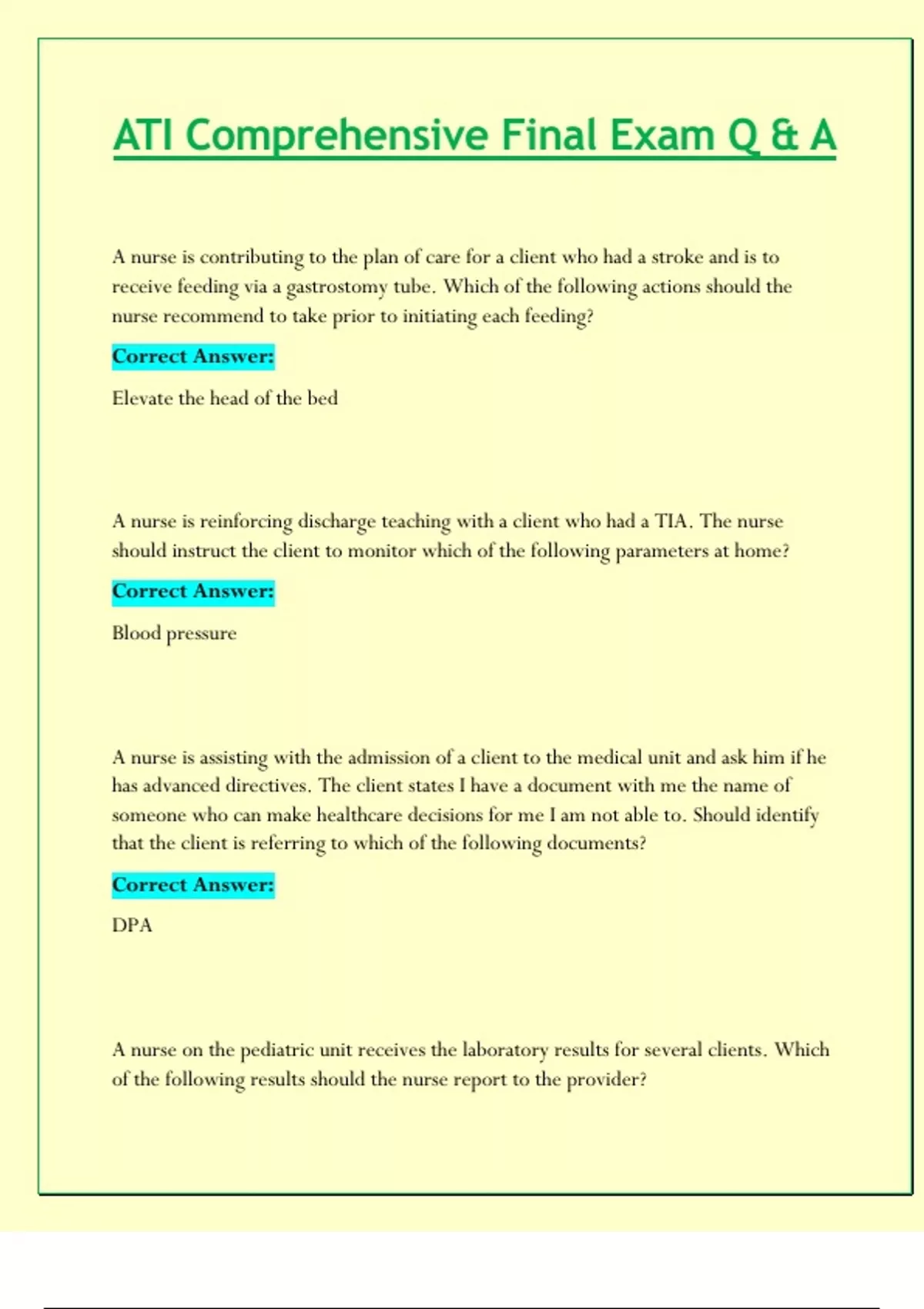 ATI Comprehensive Exam Review (Latest 2024 / 2025 Updates STUDY BUNDLE WITH COMPLETE SOLUTIONS) | Questions and Verified Answers | 100% Correct | Graded A