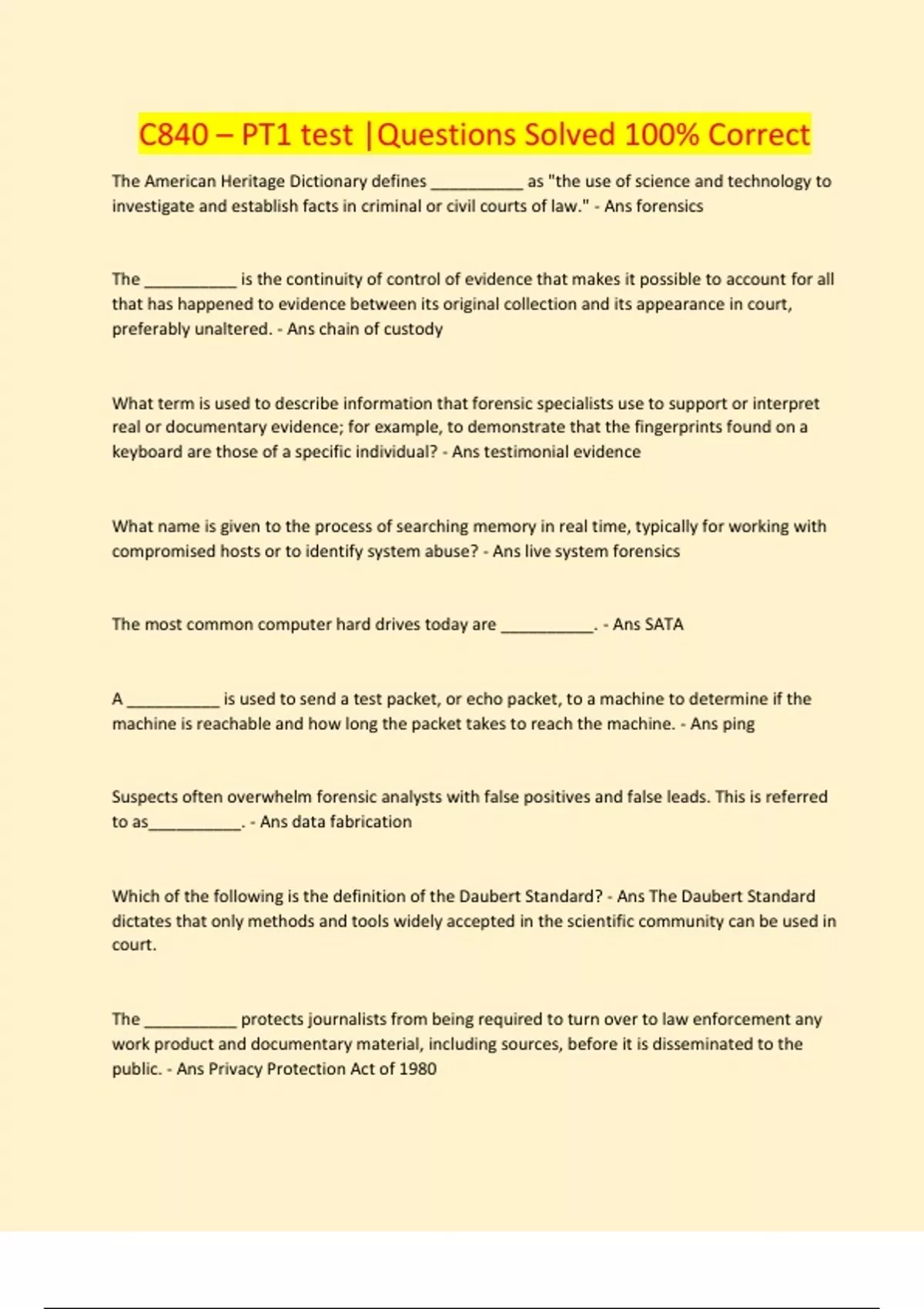 C840 – PT1 test |Questions Solved 100% Correct