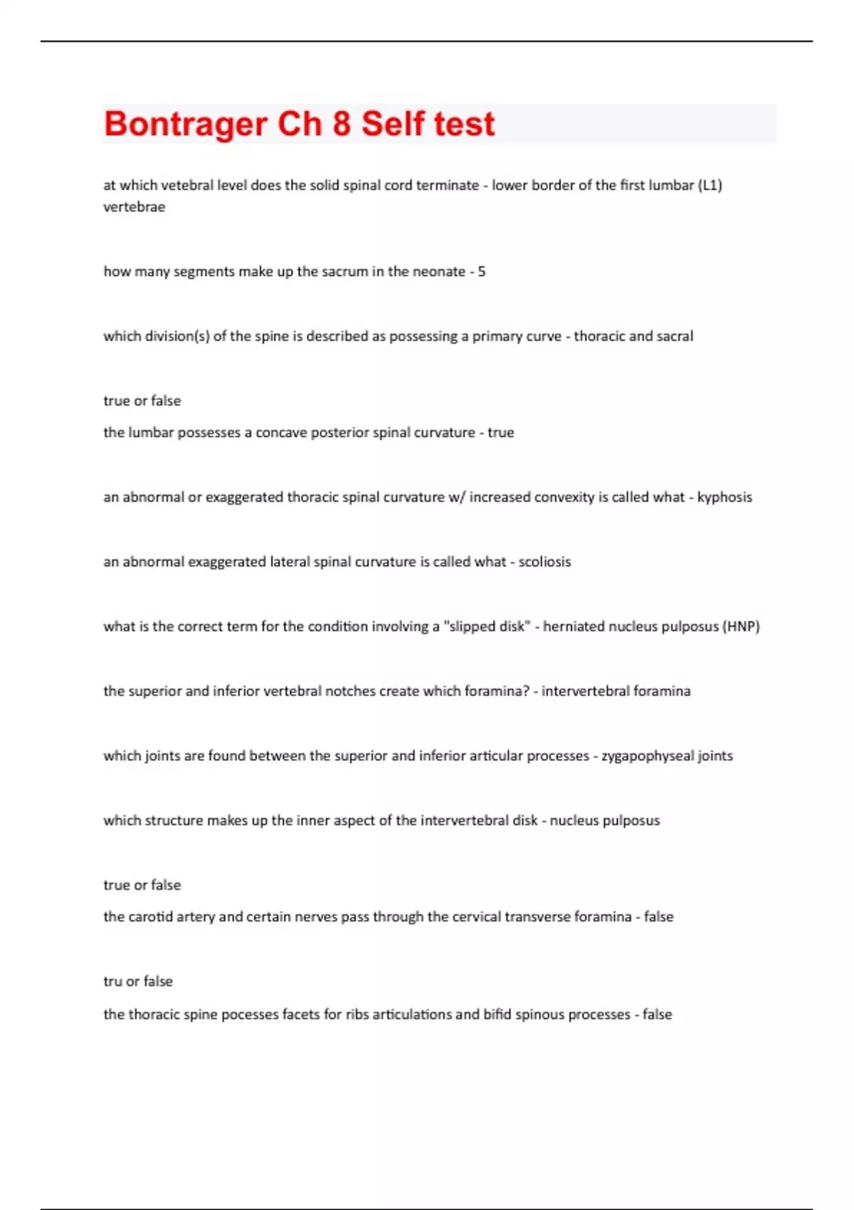 Bontrager Exam Package Deal With Verified Study Questions And Answers Rated A