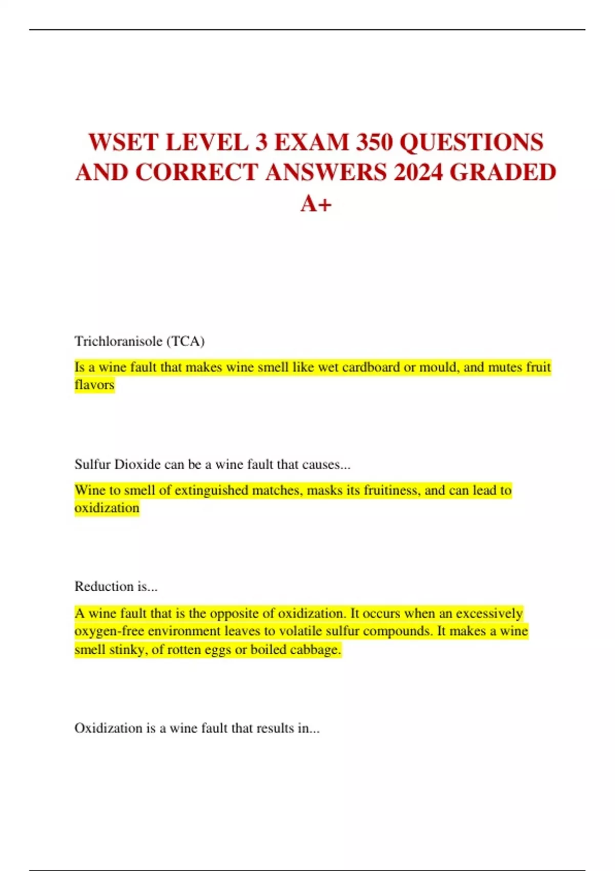 BEST WSET LEVEL 3 STUDY SET WITH EXTENSIVE QUESTIONS AND CORRECT ANSWERS