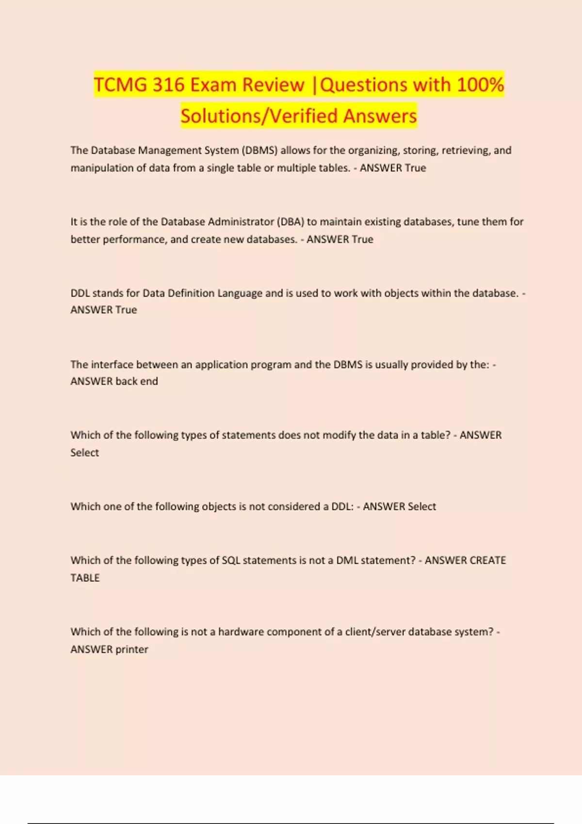 TCMG 316 Exam Review |Questions with 100% Solutions/Verified Answers