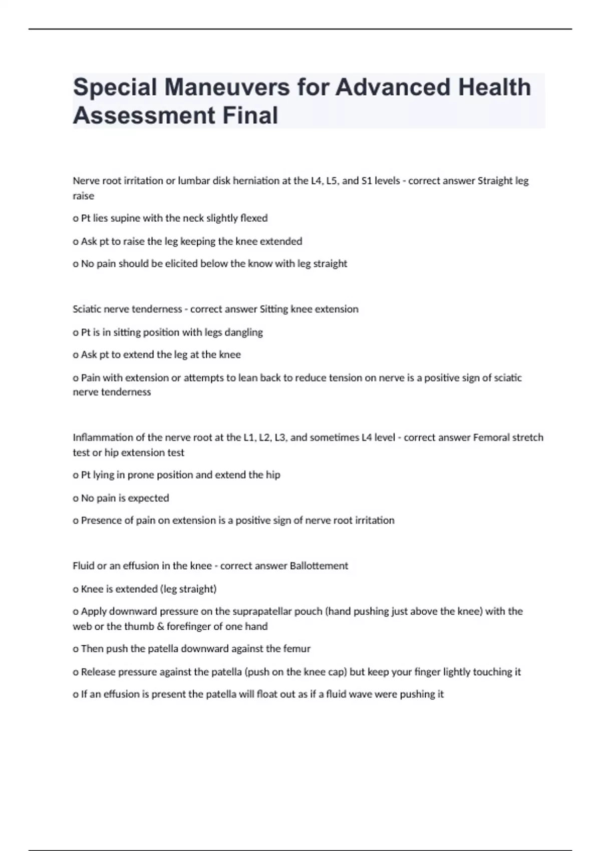 Special Maneuvers for Advanced Health Assessment Final fully solved