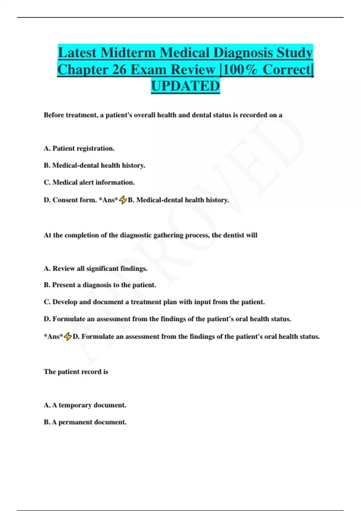 TEST BANK 1 : Medical Diagnosis and Treatment |COMPREHENSIVE|