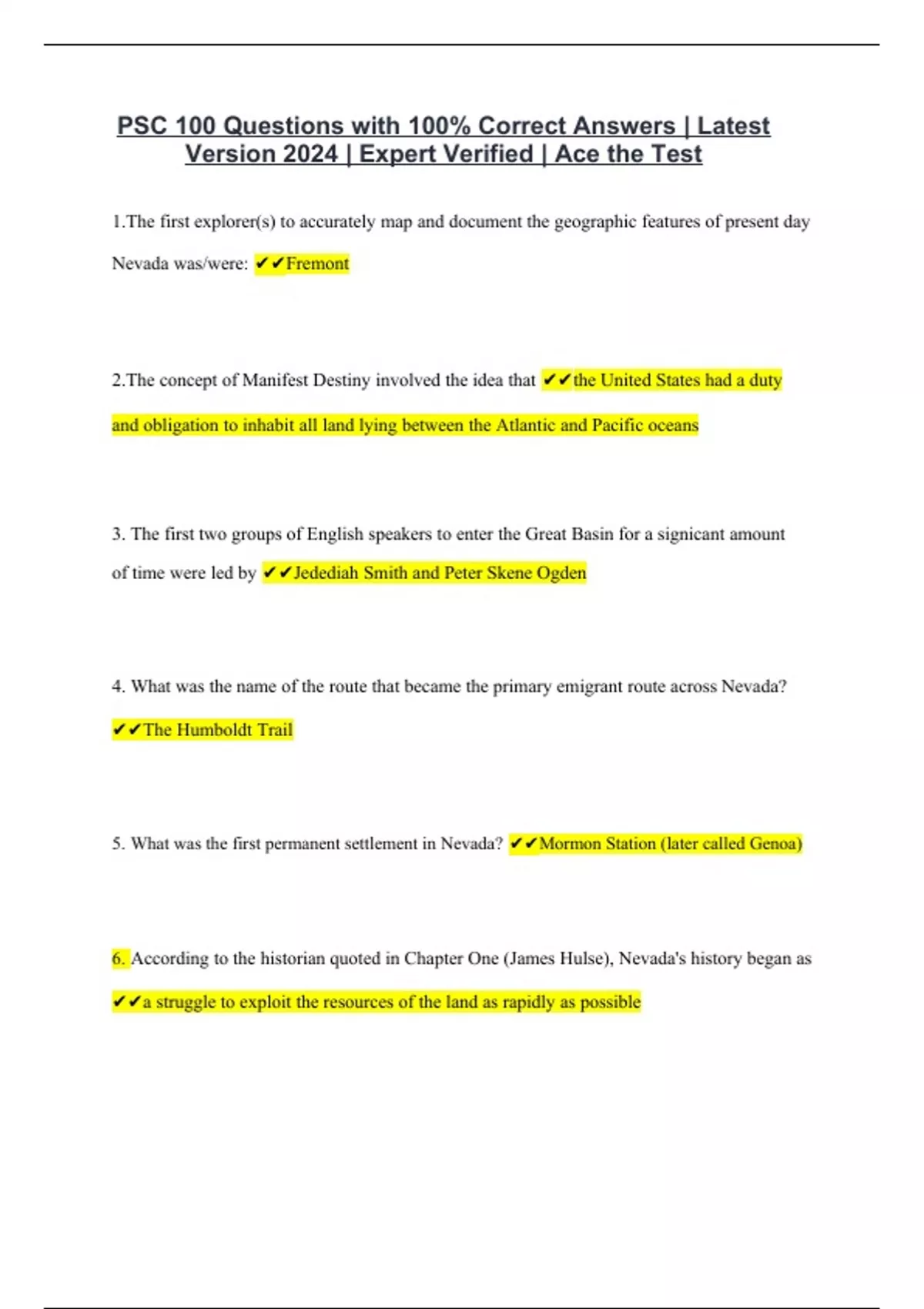 PSC 100 Questions with 100% Correct Answers | Latest Version 2024 | Expert Verified | Ace the Test