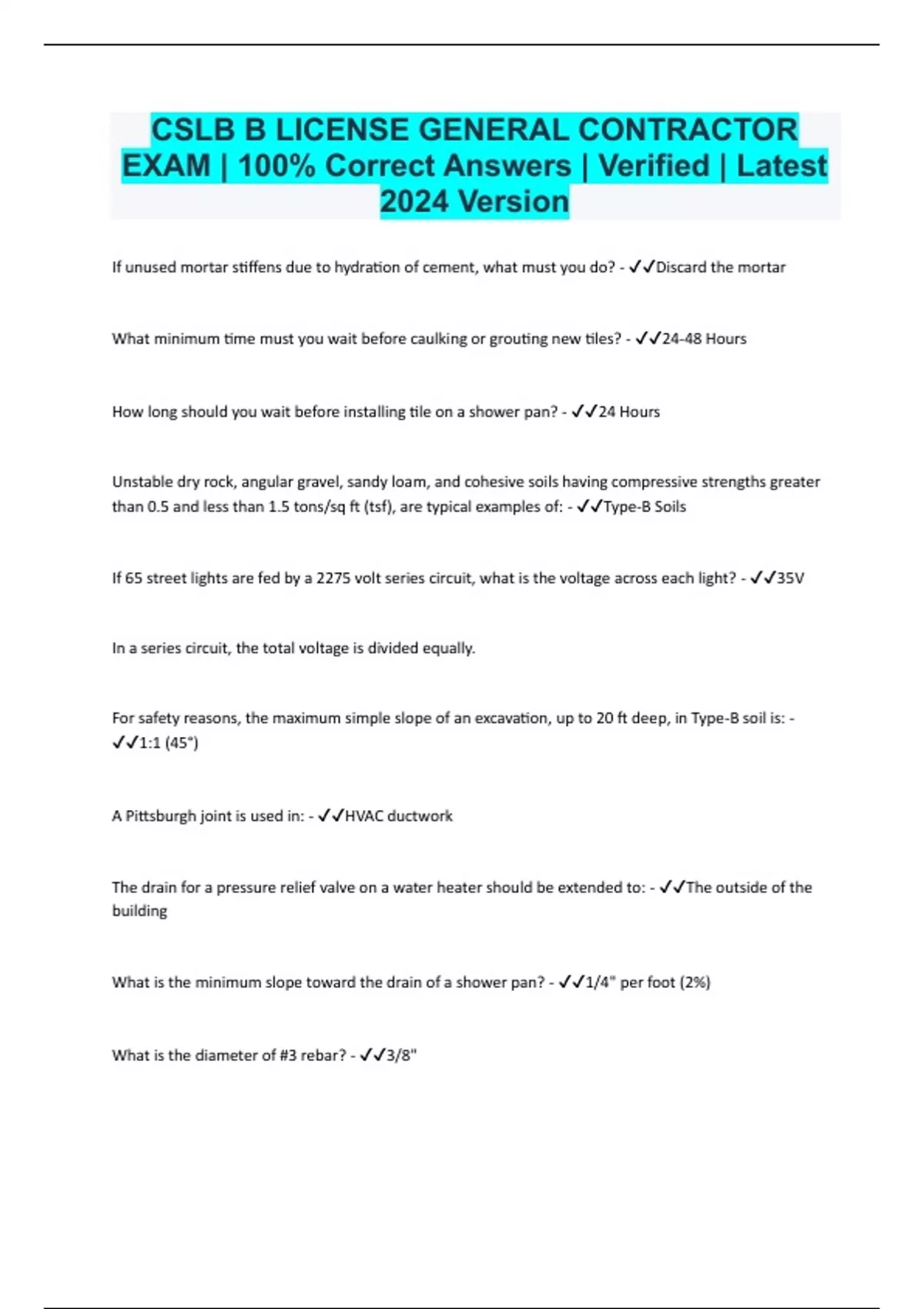 CSLB Bundled Exams Questions and Answers Latest Versions (2024/2025) Already Passed