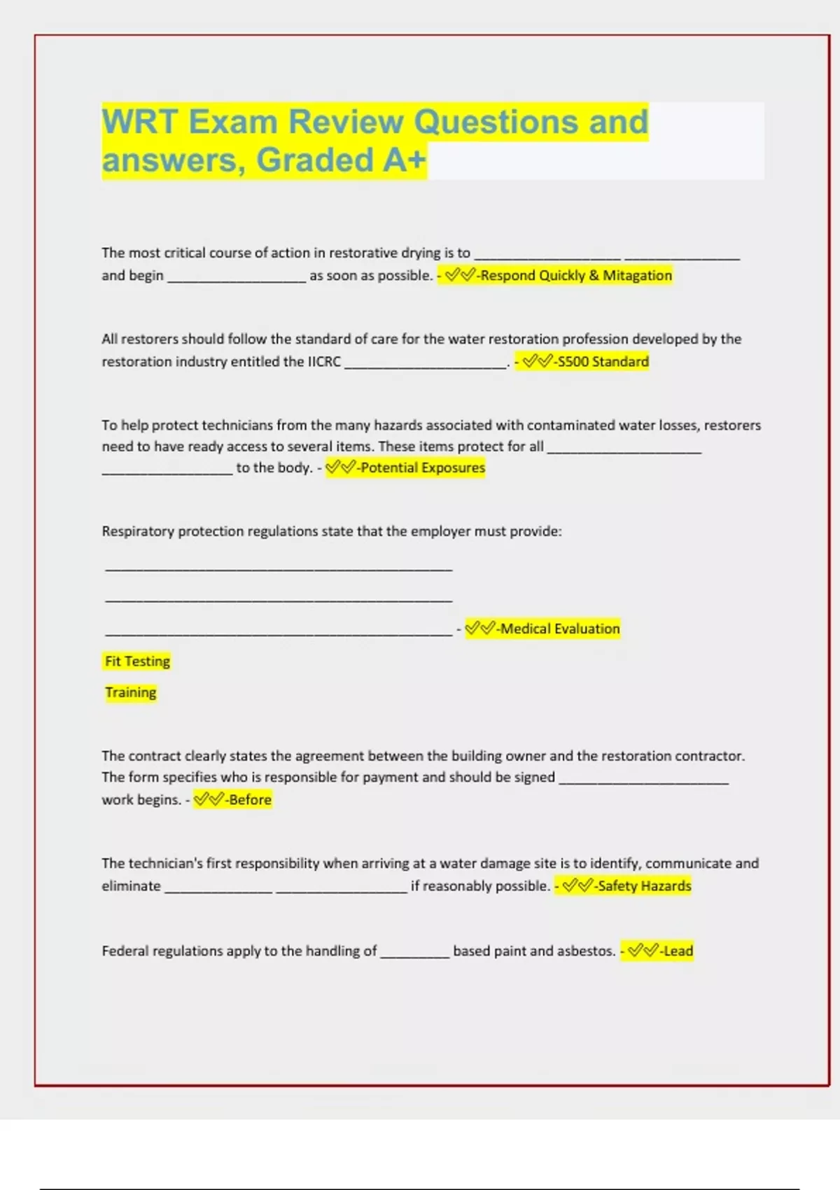 WRT Exam Review Questions and answers, rated A+| latest update 2024/25|