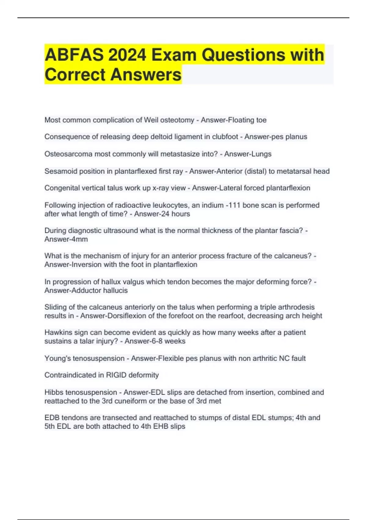 Exam (elaborations) ABFAS Trauma Section Exam Questions and Answers All Correct 2 Exam (elaborations) ABFAS Test Questions with Correct Answers 3 Exam (elaborations) ABFAS RRA Practice Test Questions and Answers All Correct 4 Exam (elaborations) ABFAS Review Questions with Correct Answers 5 Exam (elaborations) ABFAS Practice Test Questions with