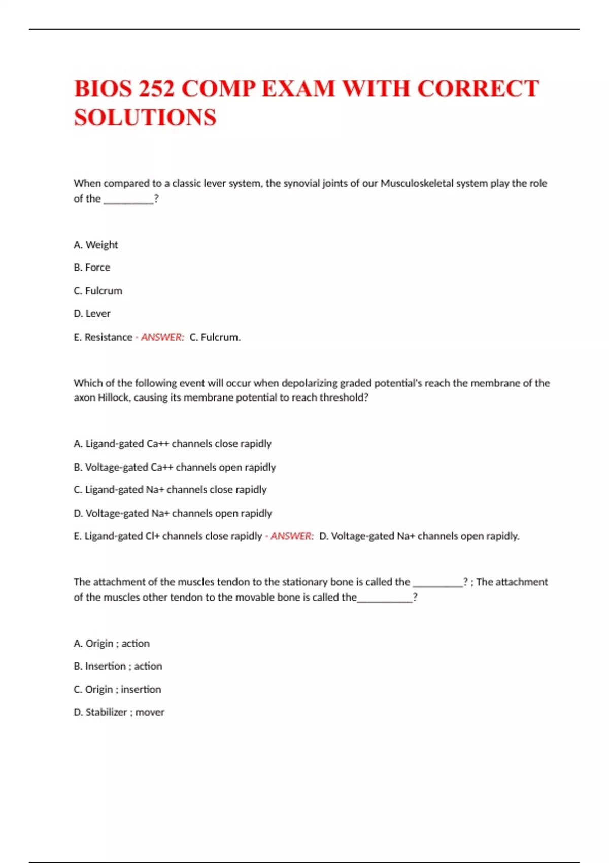 Chamberlain bios 252 exam 1 questions with verified answers