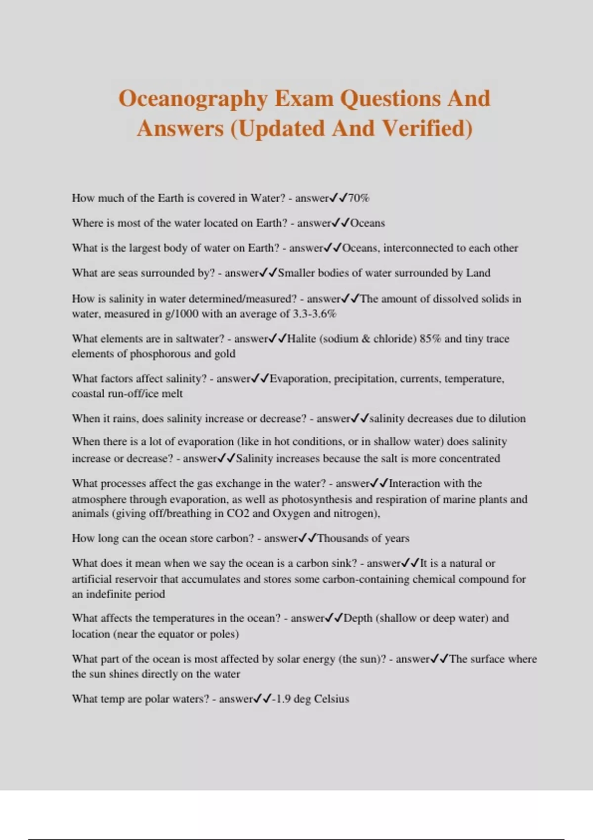 Oceanography Exam Questions And Answers (Updated And Verified)