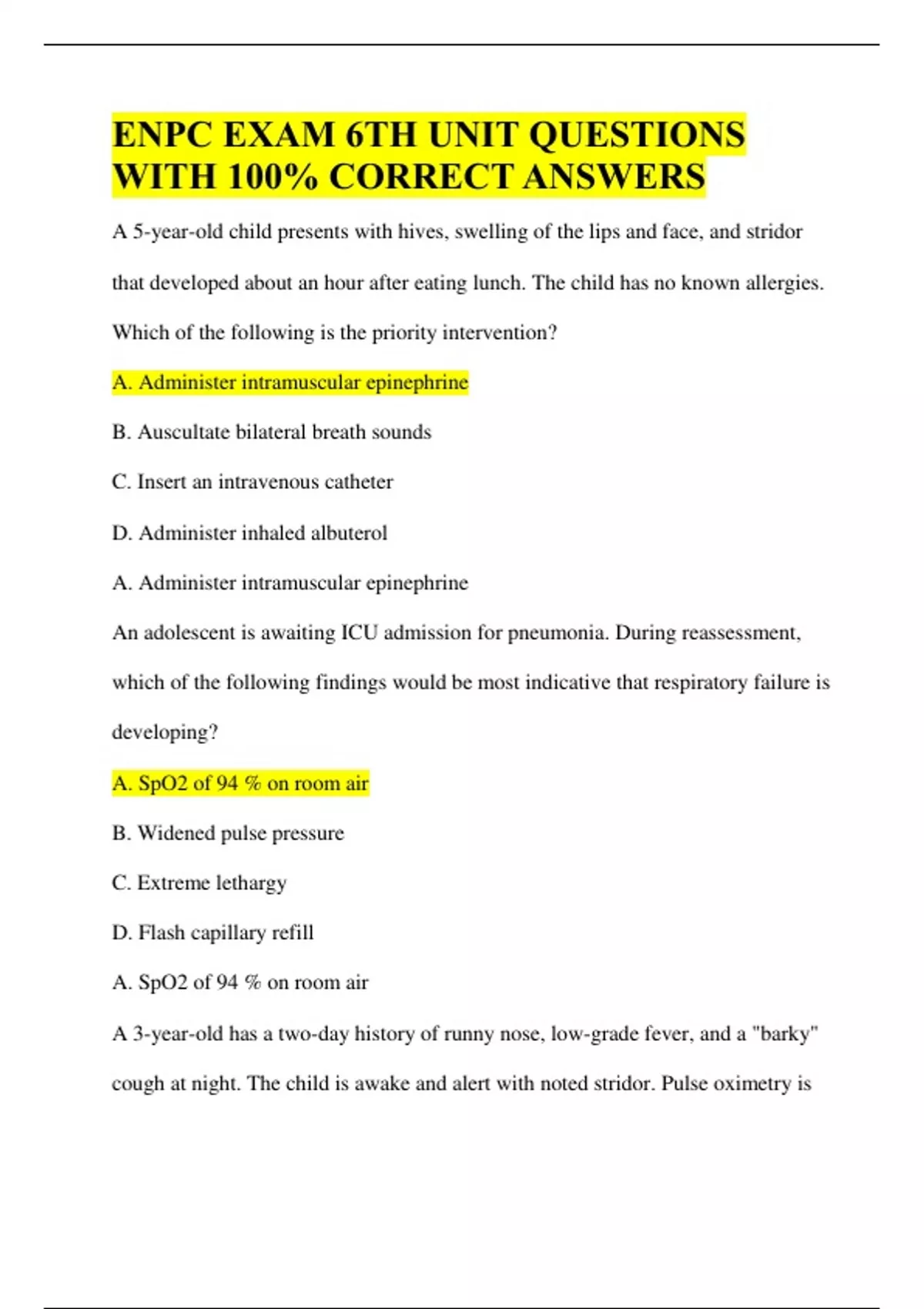 ENPC Test Questions 6th Edition| Complete Questions and Answers with 100% Score