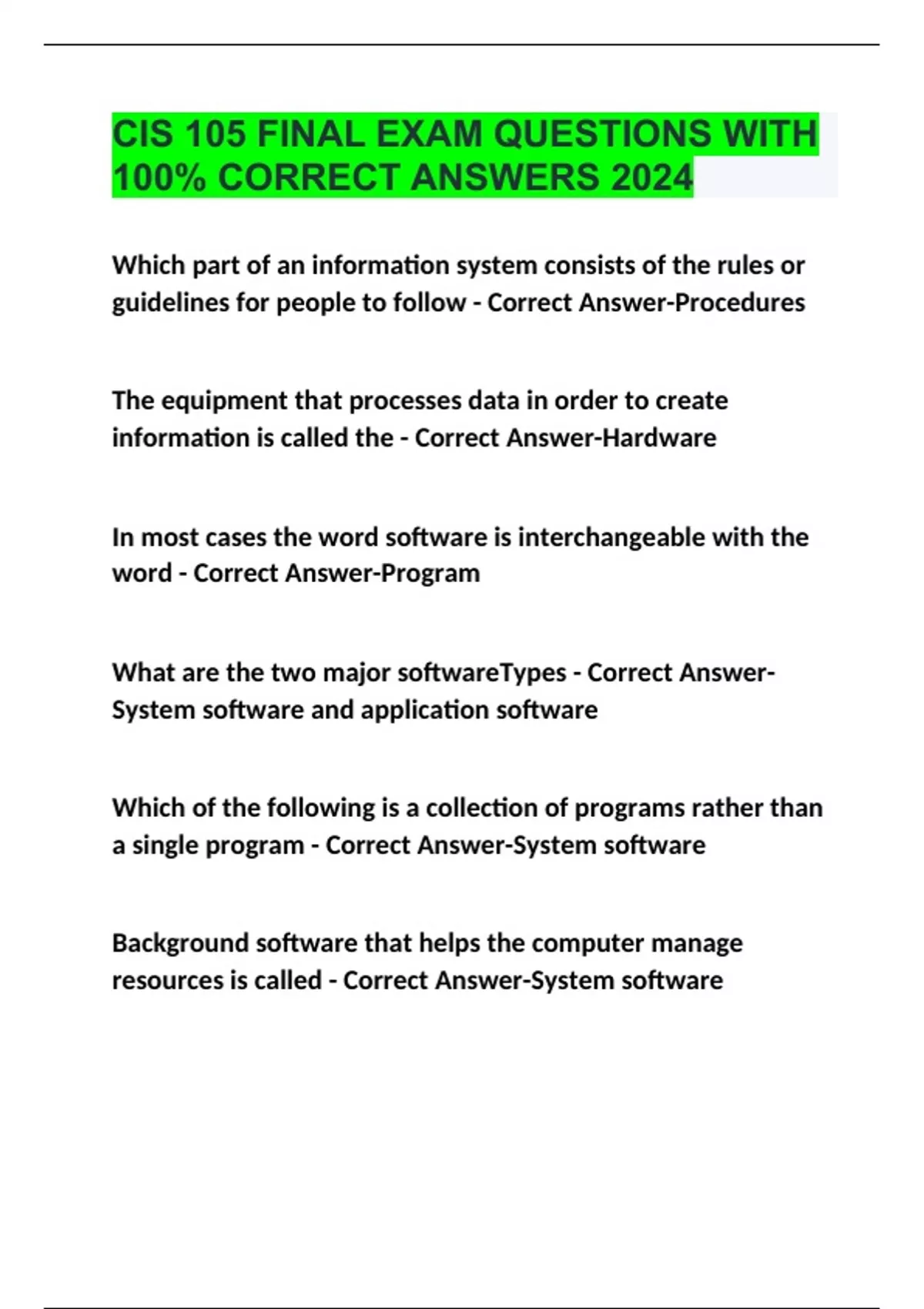 CIS105 Final Exam Questions with 100% Correct Answers | Verified | Latest Update CIS 105 FINAL EXAM QUESTIONS WITH 100% CORRECT ANSWERS 2024 CIS 105 Final Exam With 100% Correct Answers 2024 CIS 105 Exam 1 With 100% Correct Answers 2024 CIS 105 Final Exam Questions With 100% Correct Answers 2024 CIS 105 ASU 4-7 Final Exam Prep With 100% Correct