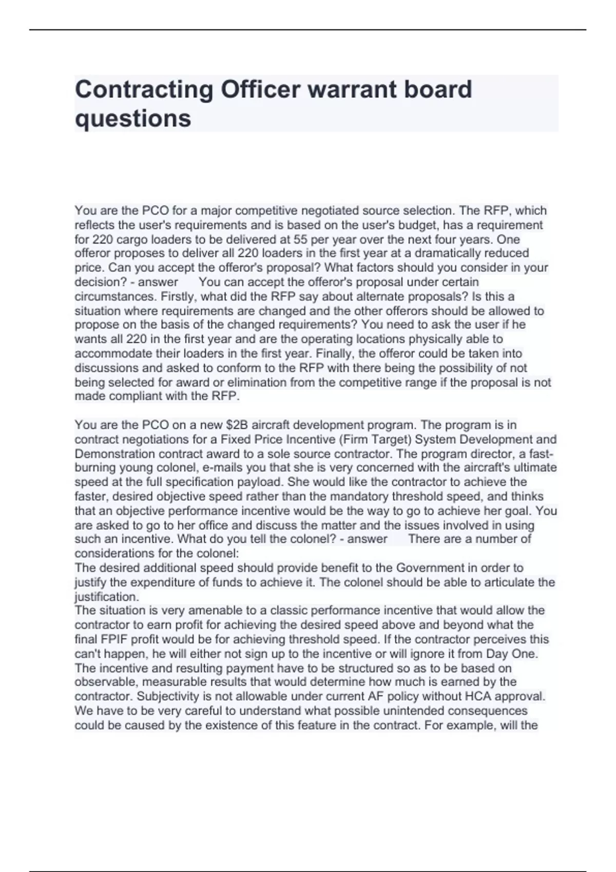 Exam (elaborations) AR 670-1 Board Questions and Answers 2024 Exam (elaborations) Warrant Scenarios Questions with correct Answers 2024 Exam (elaborations) ACO CORB QUESTIONS AND ANSWERS 100% CORRECT Exam (elaborations) Merit Review Board Questions (MRB Cadets) Questions with correct Answers 2024 Exam (elaborations) CLC 059 Subcontracting