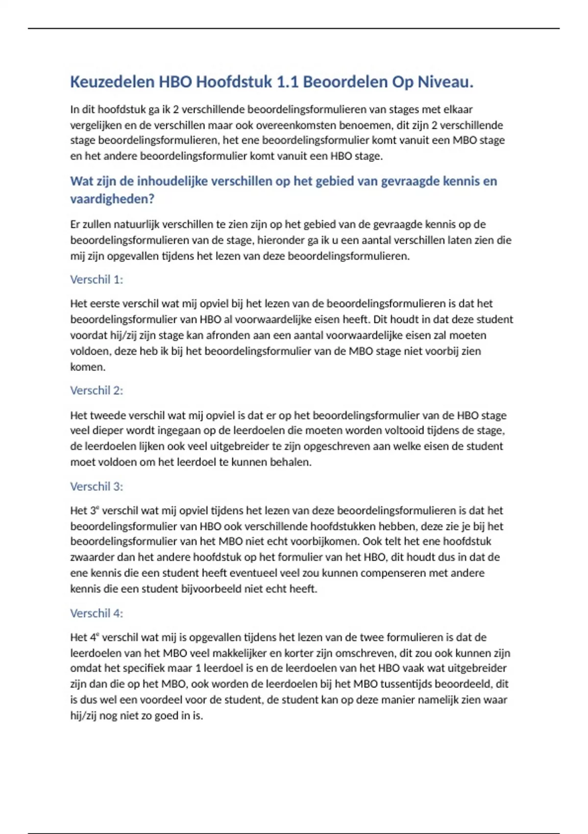 Keuzedeel HBO Opdracht 1.1 Beoordelen Op Niveau