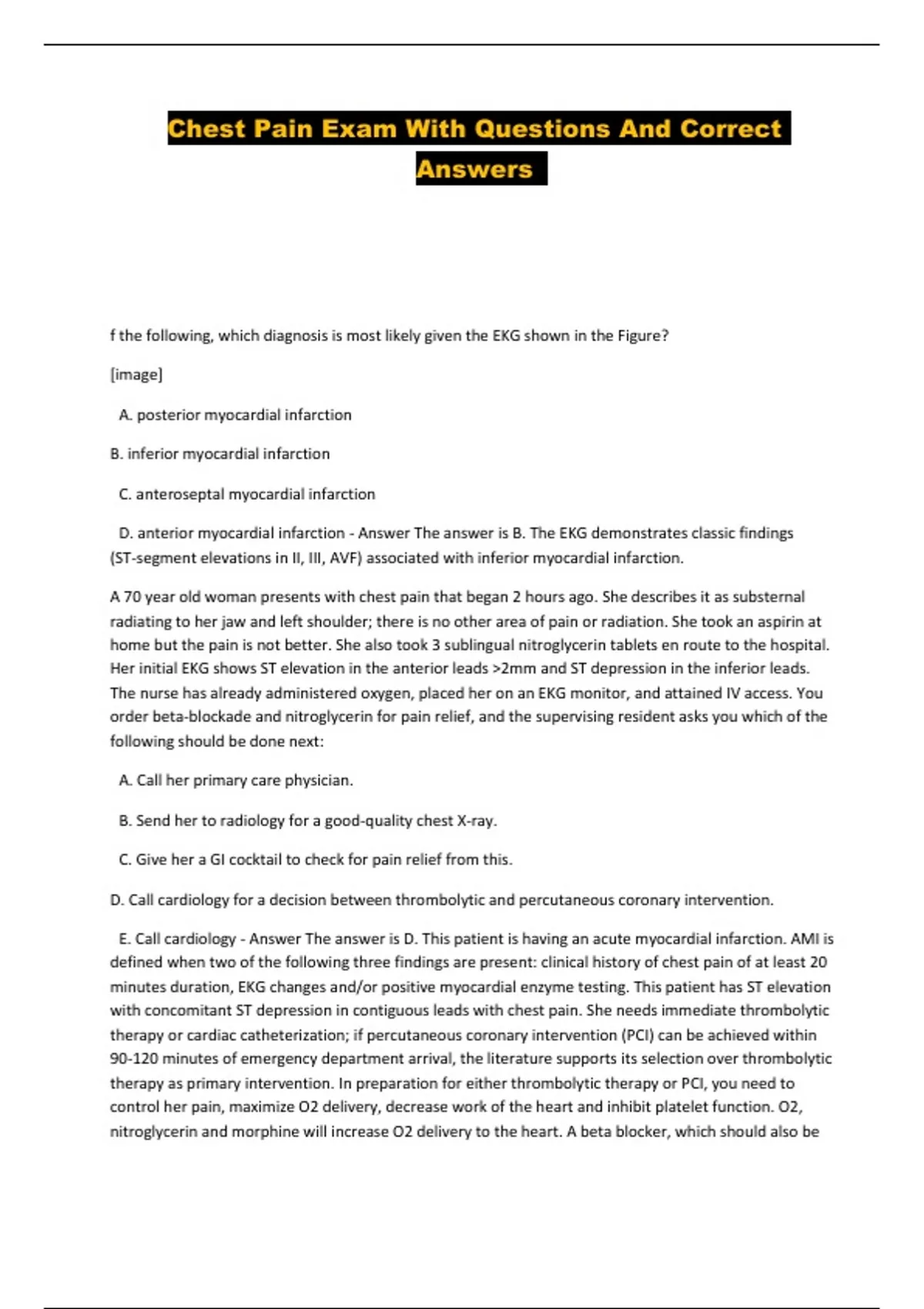 CHEST PAIN BUNDLED EXAMS WITH SOLUTION