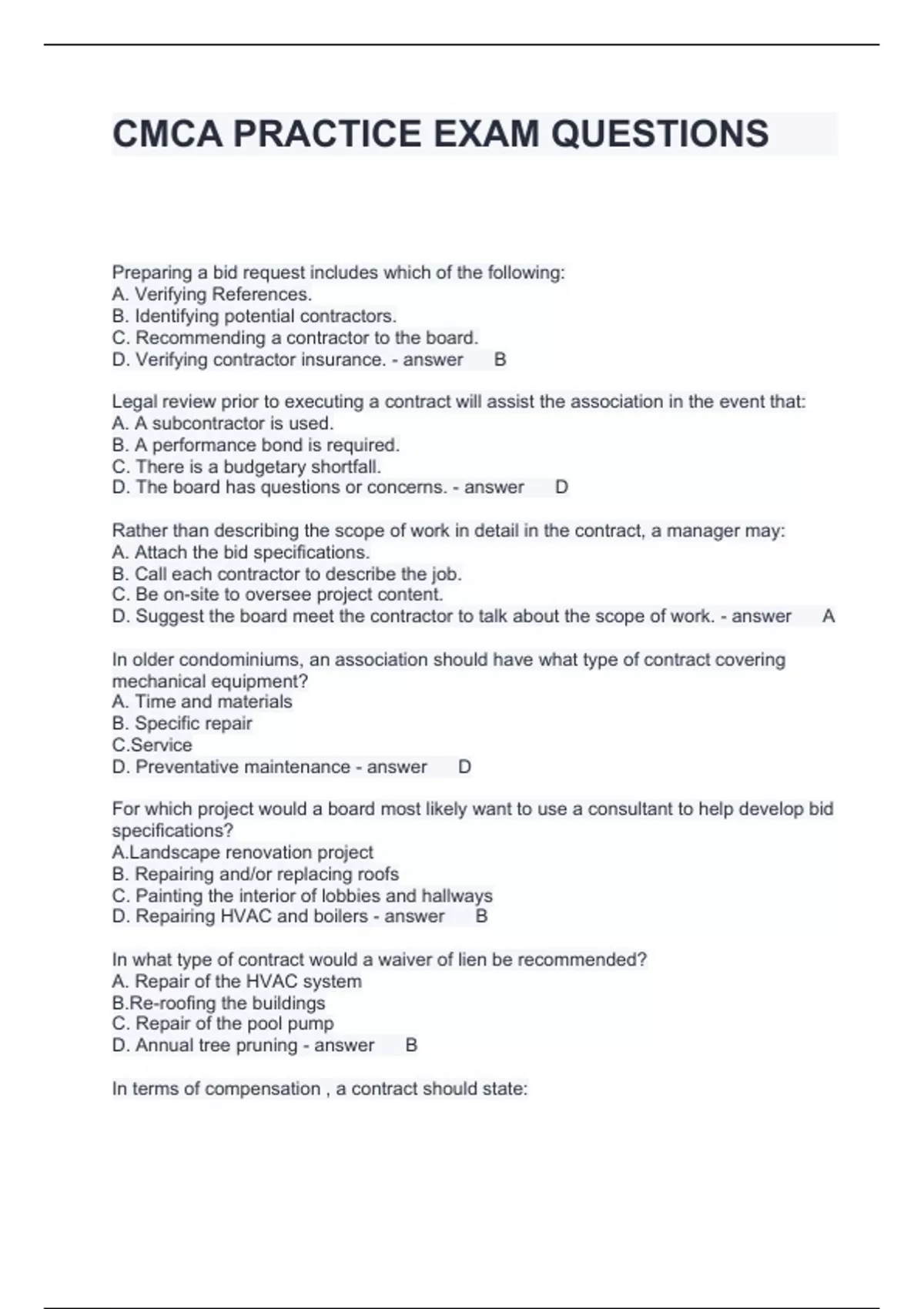 Exam (elaborations) CMCA. Financial Management Questions and Answers 100% correct Exam (elaborations) CMCA - FINANCIAL Management Questions and Answers 2024 Exam (elaborations) CMCA Vocabulary Questions and Answers 100% Solved Exam (elaborations) CMCA study guide practice exam Questions and Answers Fully Solved Exam (elaborations) CMCA EXA