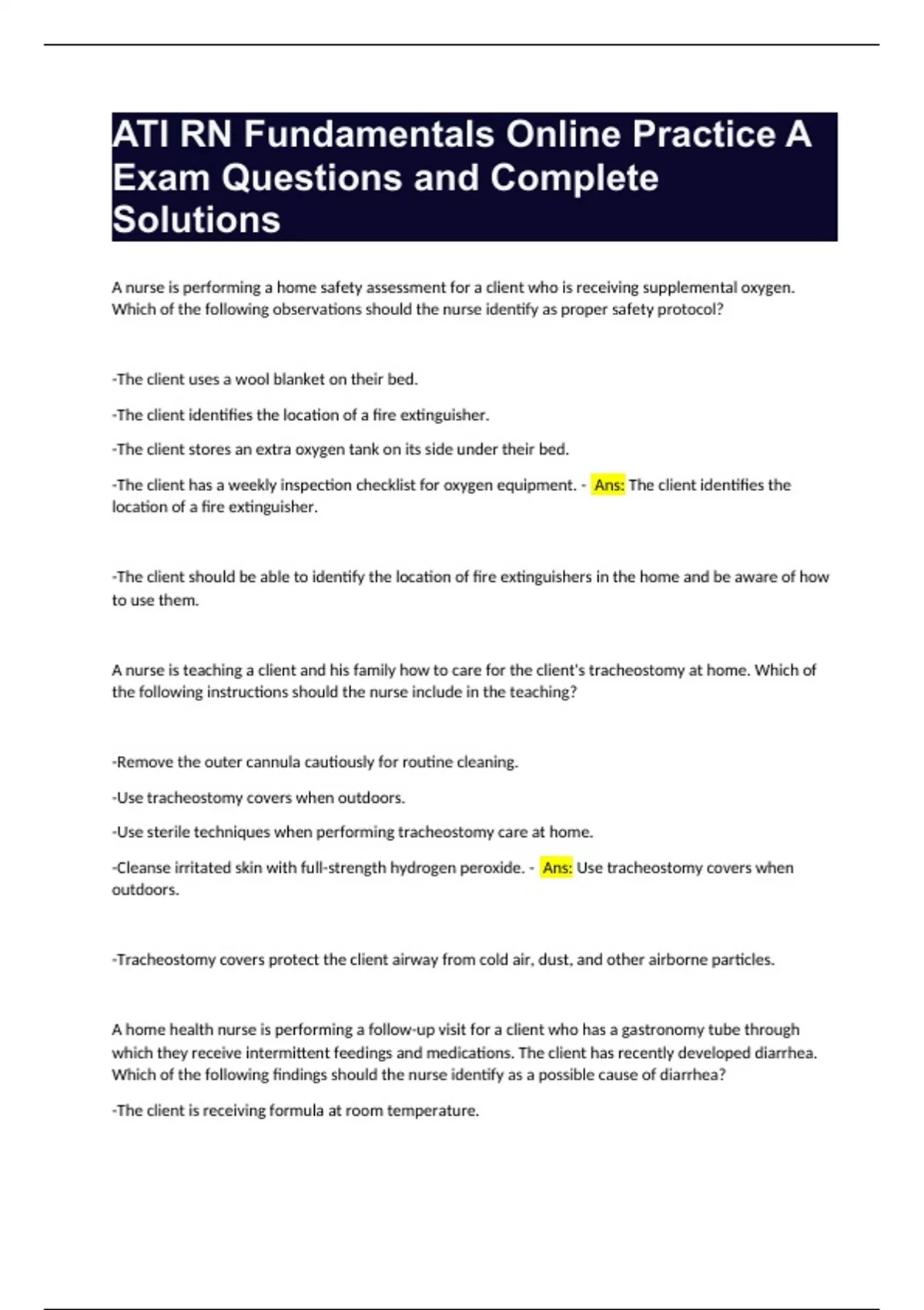 ATI RN Fundamentals Practice Tests Questions and Complete Solutions Bundle Compilation Graded A+