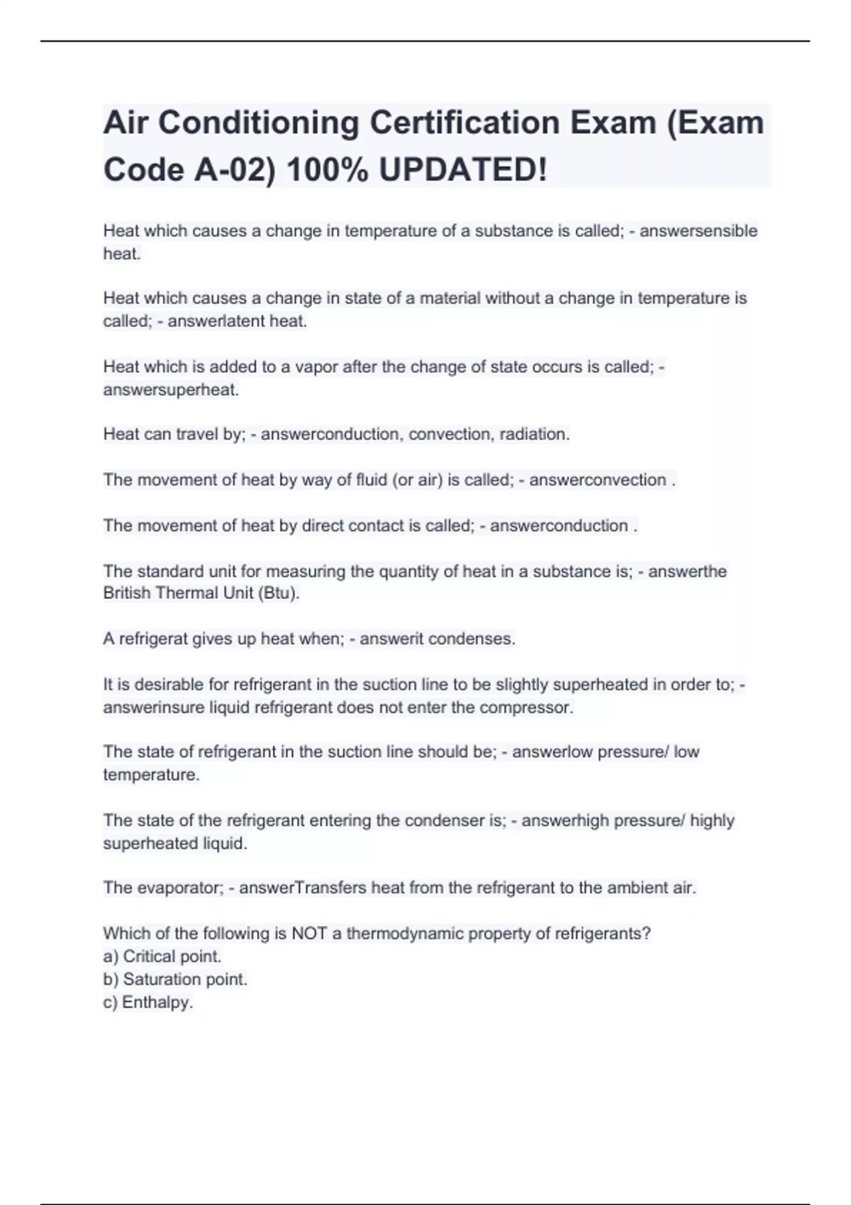 Air Conditioning Certification 100% CORRECT AND UPDATED!