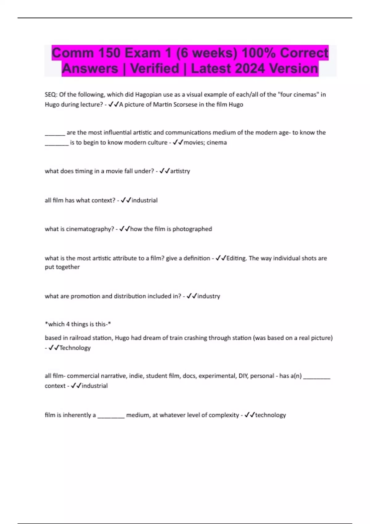 COMM 150 6 Week Exam | 100% Correct Answers | Verified | Latest 2024 Version