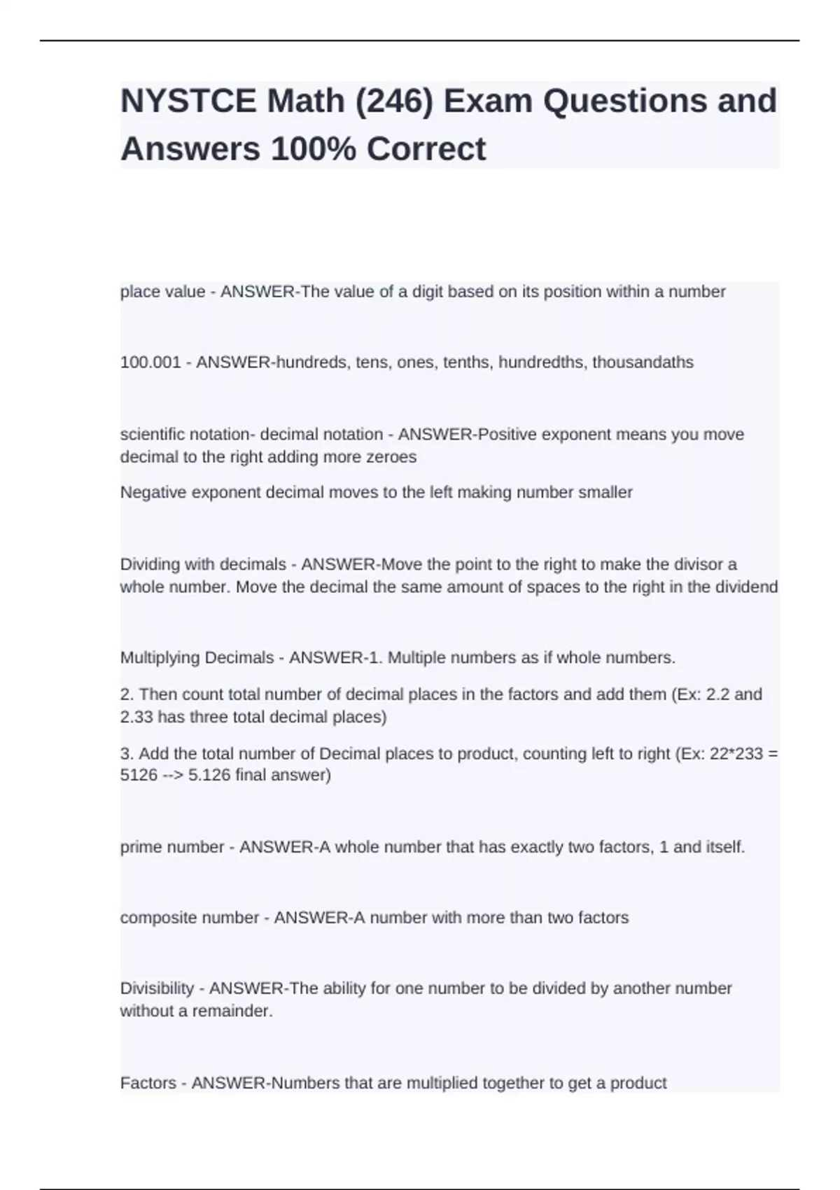 NYSTCE Math (246) Exam Questions and Answers 100% CorrectNYSTCE Math (246) Exam Questions and Answers 100% Correct