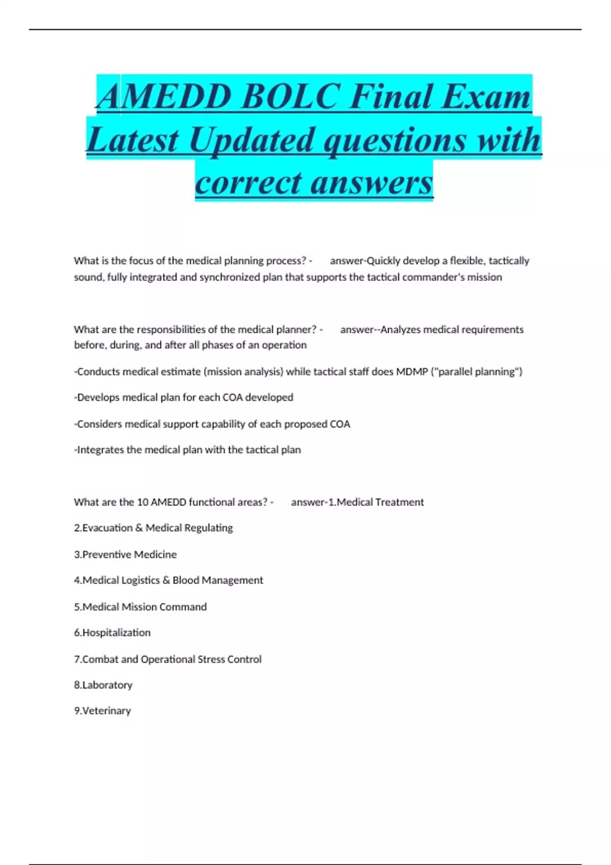 AMEDD BOLC Final Exam Latest Updated questions with correct answers