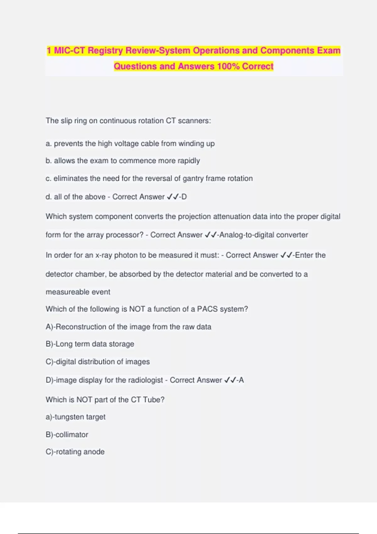 CT Registry Bundled Exams Questions and Answers 100% Verified and Updated | Graded A+