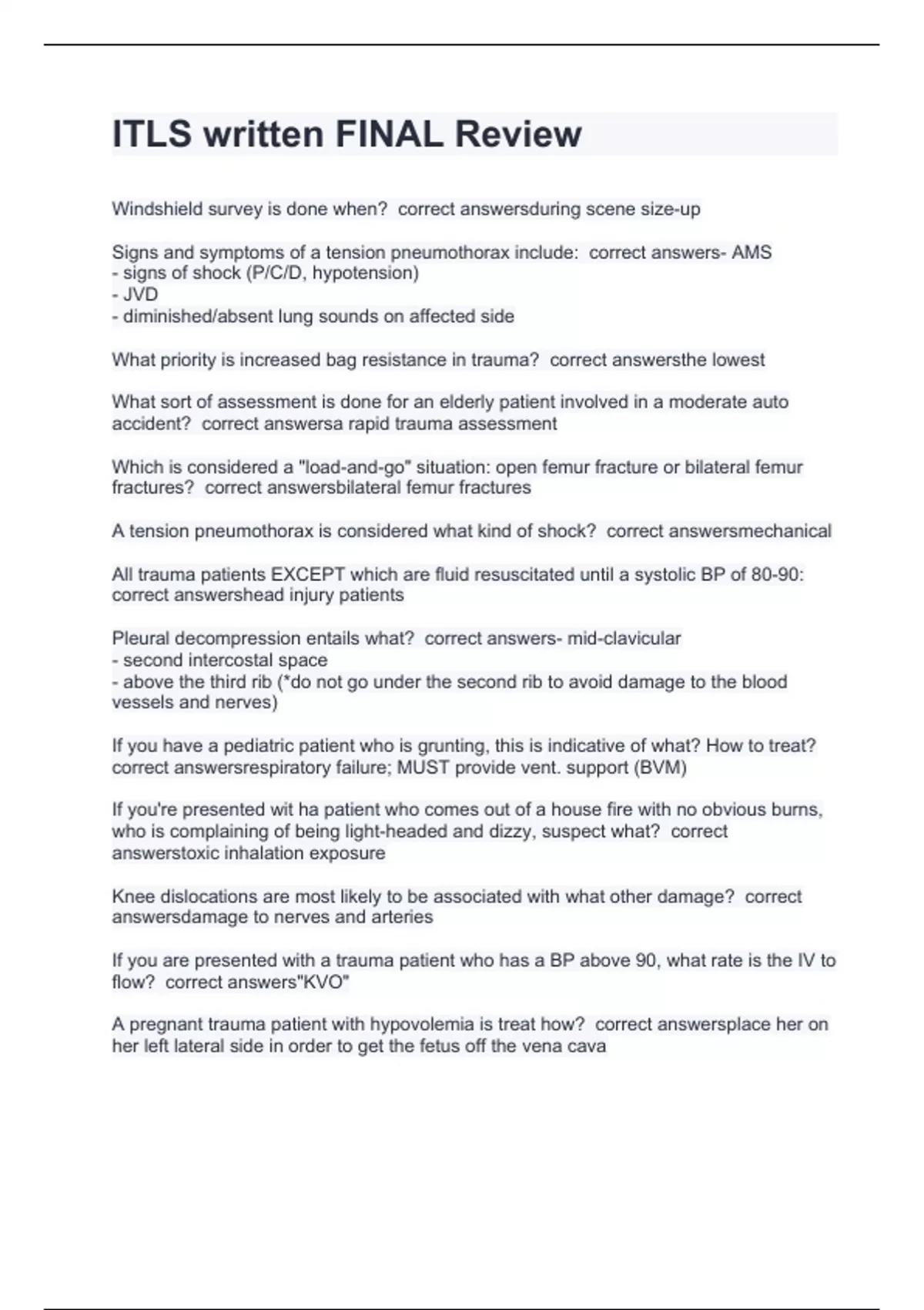 ITLS Pediatric Exam with 100% correct solutions 2024 International Trauma Life Support (ITLS) exam with 100% correct solutions 2024