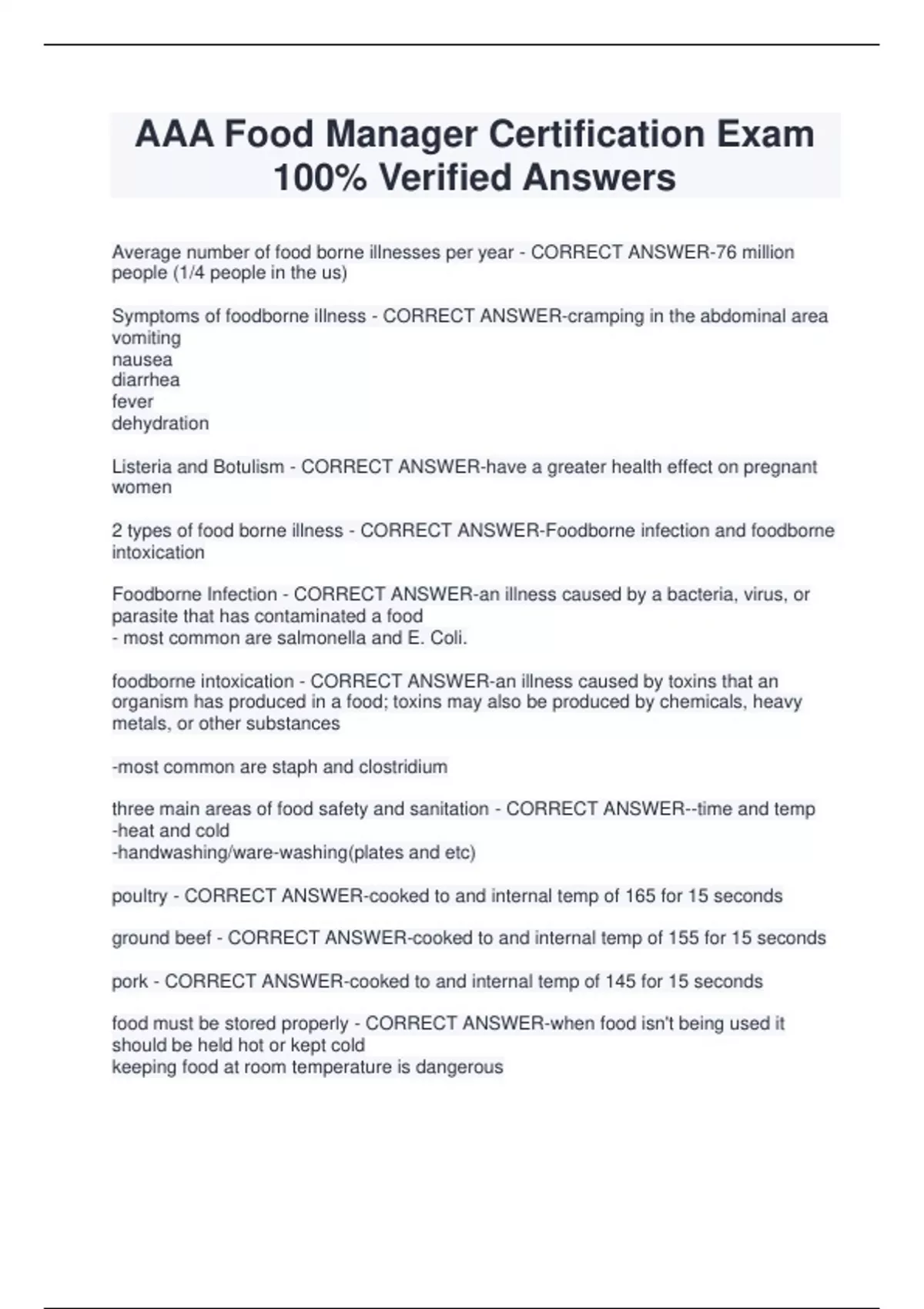 Package deal for AAA Food Manager Certification Exam 100% Verified Answers