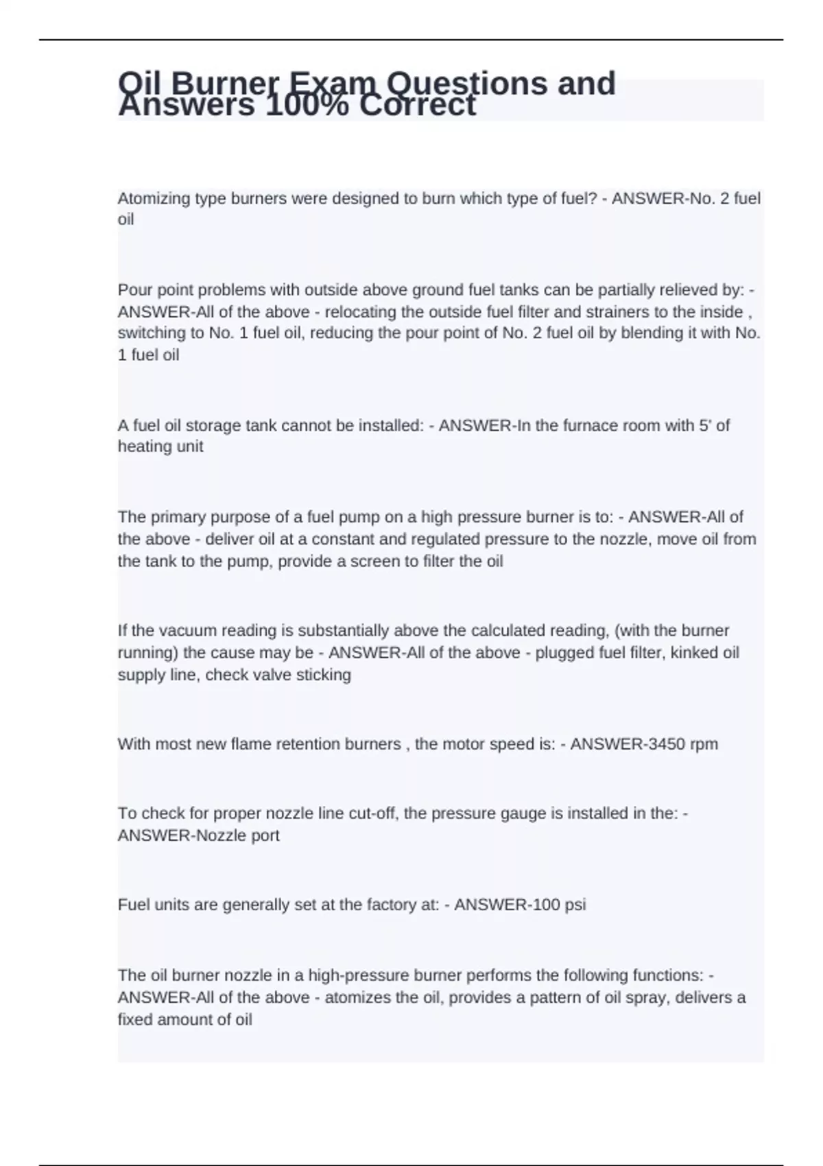 Oil Burners for Heating Boilers Exam Questions & Answers(GRADED A)