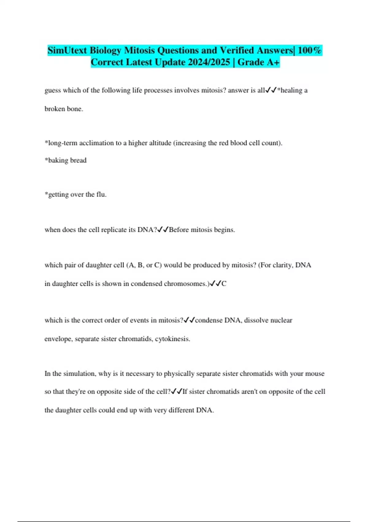 BUNDLE::SimUtext Biology EXAMS Questions and Verified Answers| 100% Correct Latest Update 2024/2025 | Grade A+