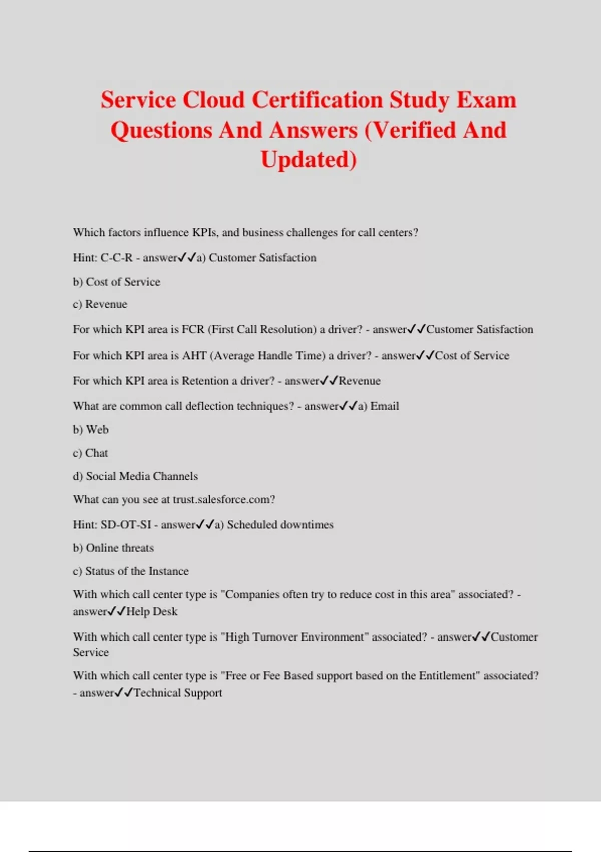 Service Cloud Certification Study Exam Questions And Answers (Verified And Updated)