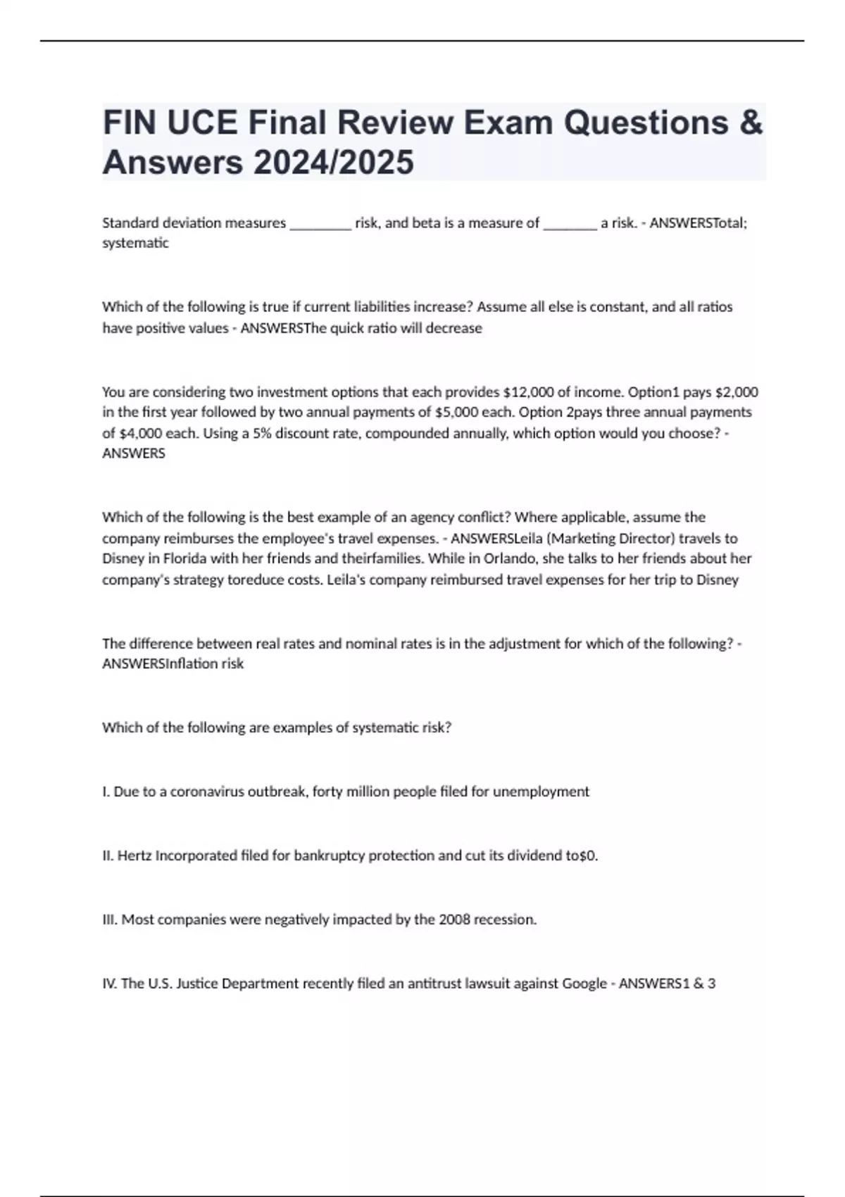 FIN UCE Final Review Exam Questions & Answers 2024/2025