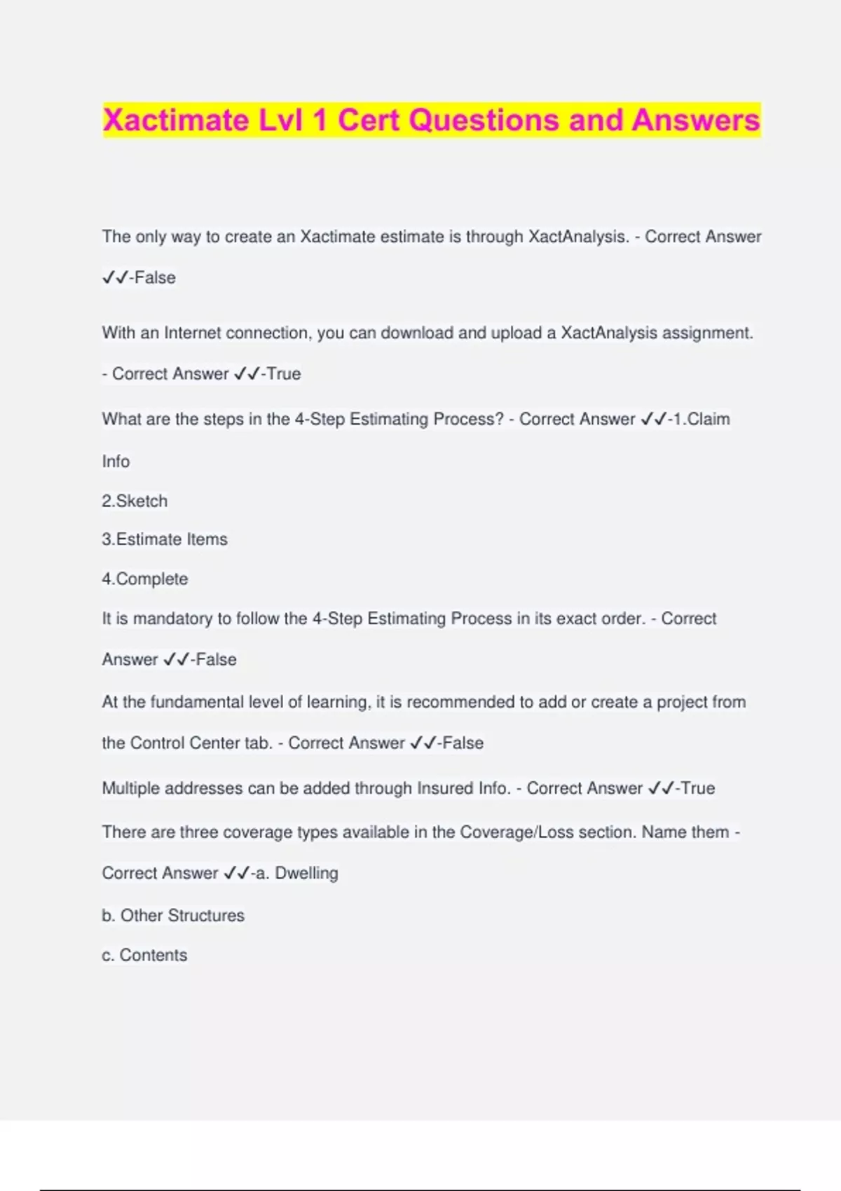 Xactimate Level 2 Certification Exam Practice Questions and Answers
