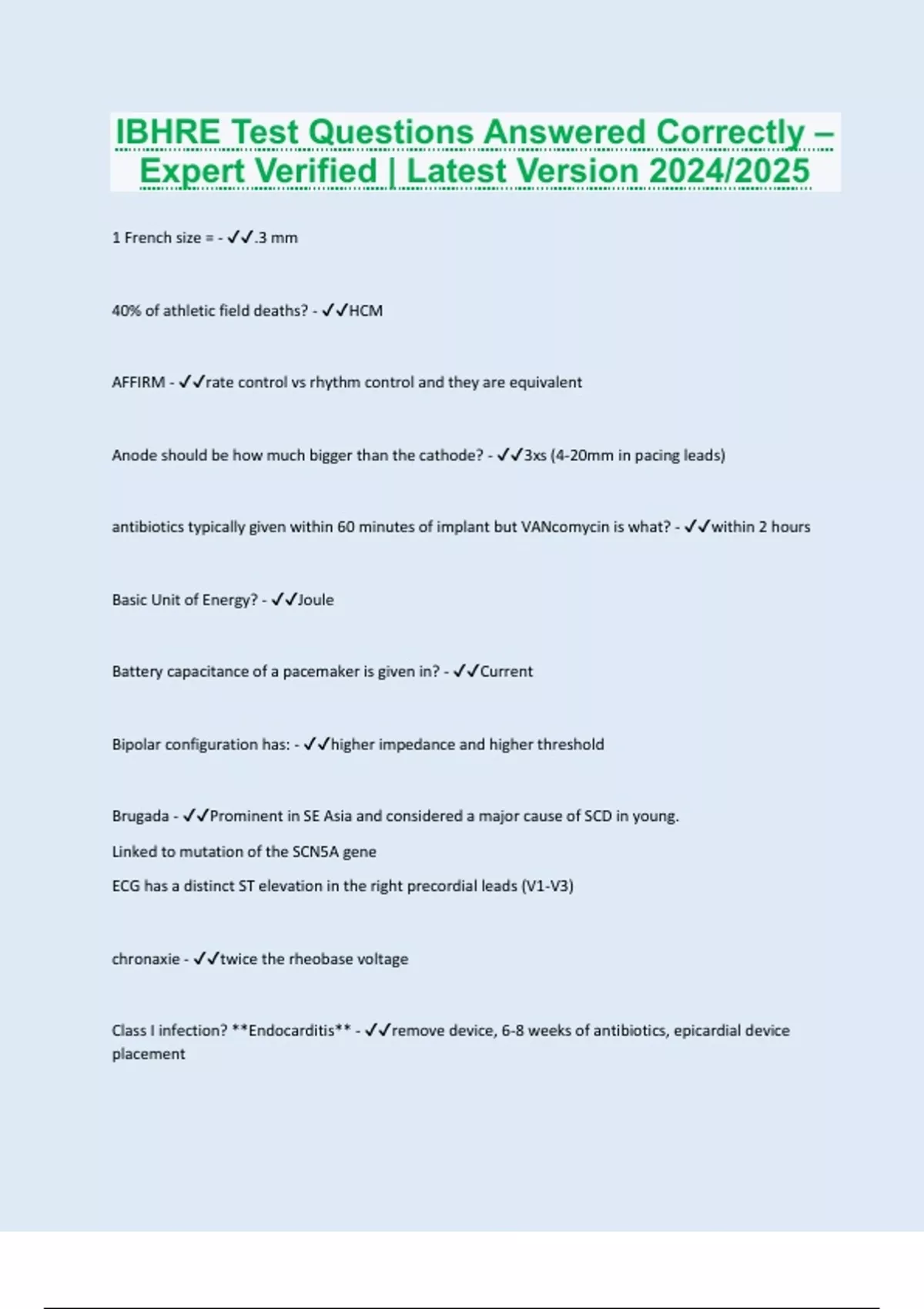 IBHRE Test/Exam Bundled Resources with Complete Solution | Expert Verified 2024/2025 | Guaranteed Success