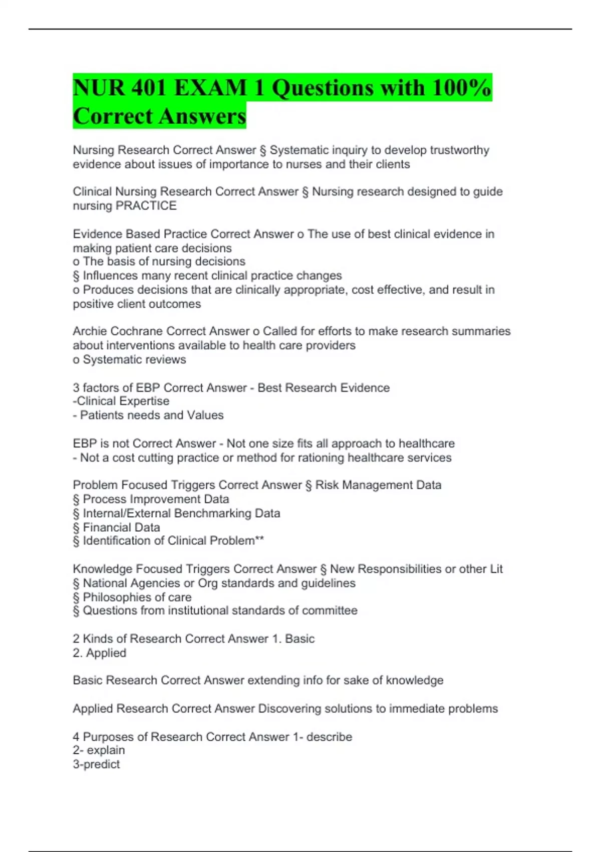 NUR 401 EXAM 1 Questions with 100% Correct Answers Bundled Package