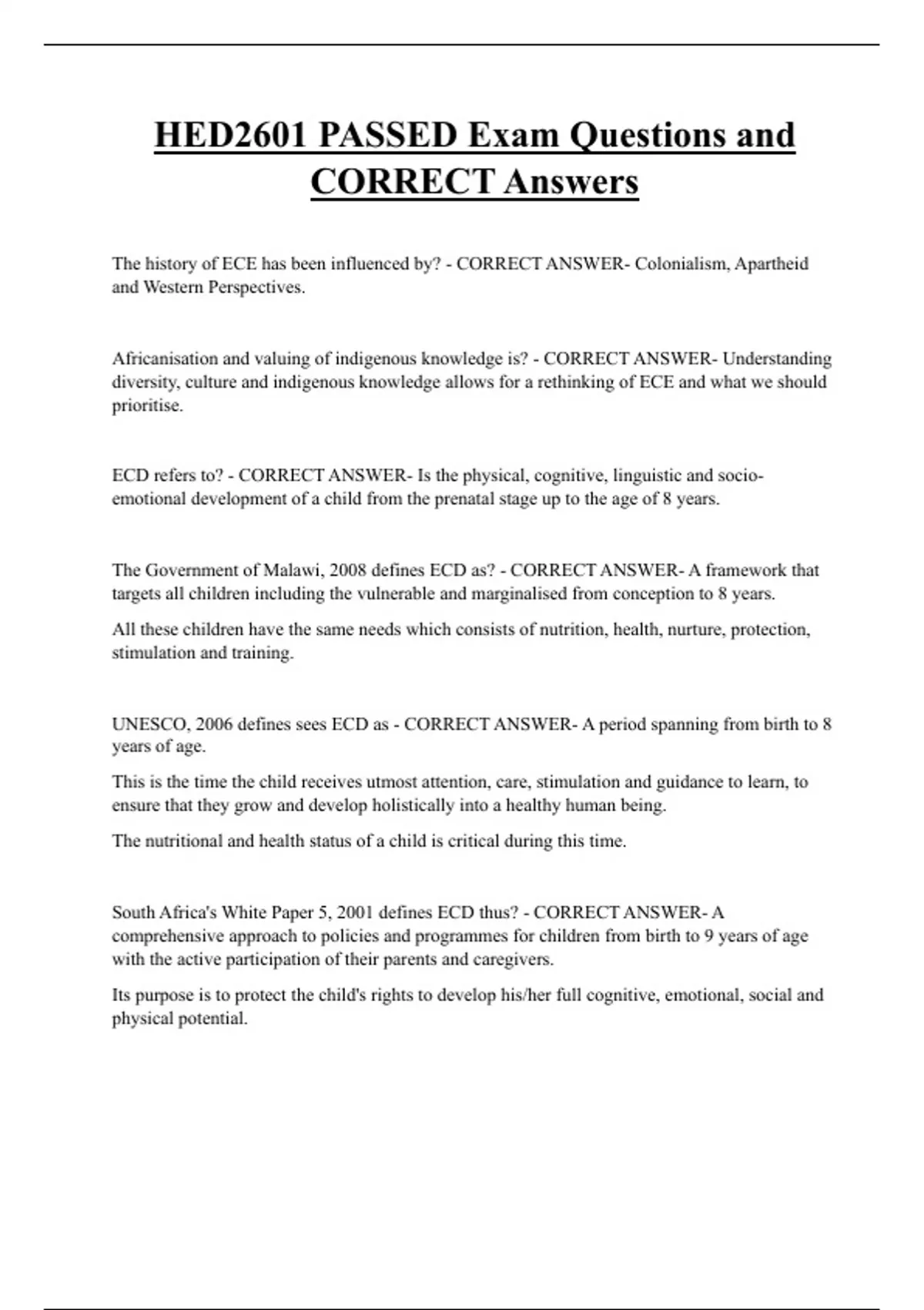 Hed2601 Bundled Exam Questions Package with Correct Answers