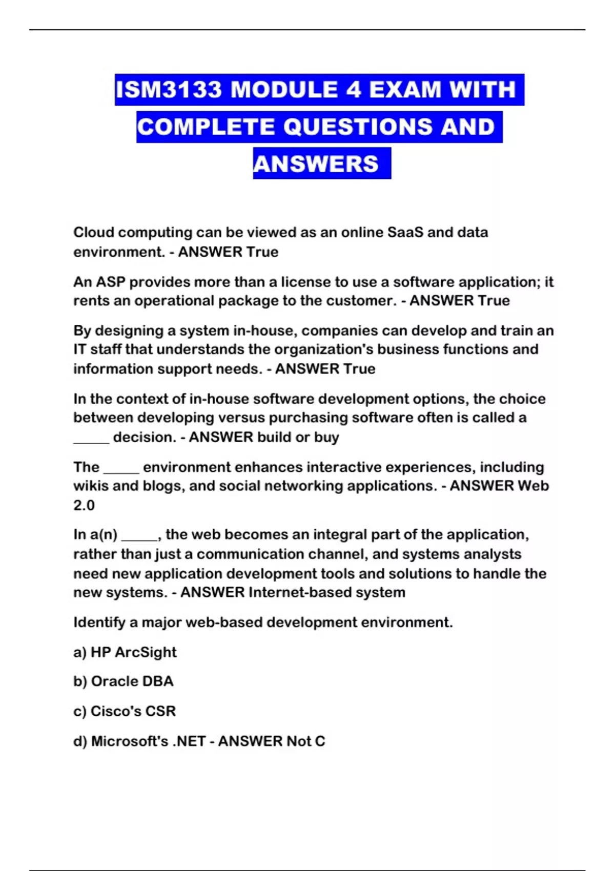 ISM3133 /ISM 3133 PACKAGED EXAMS WITH ALL QUESTIONS AND ANSWERS