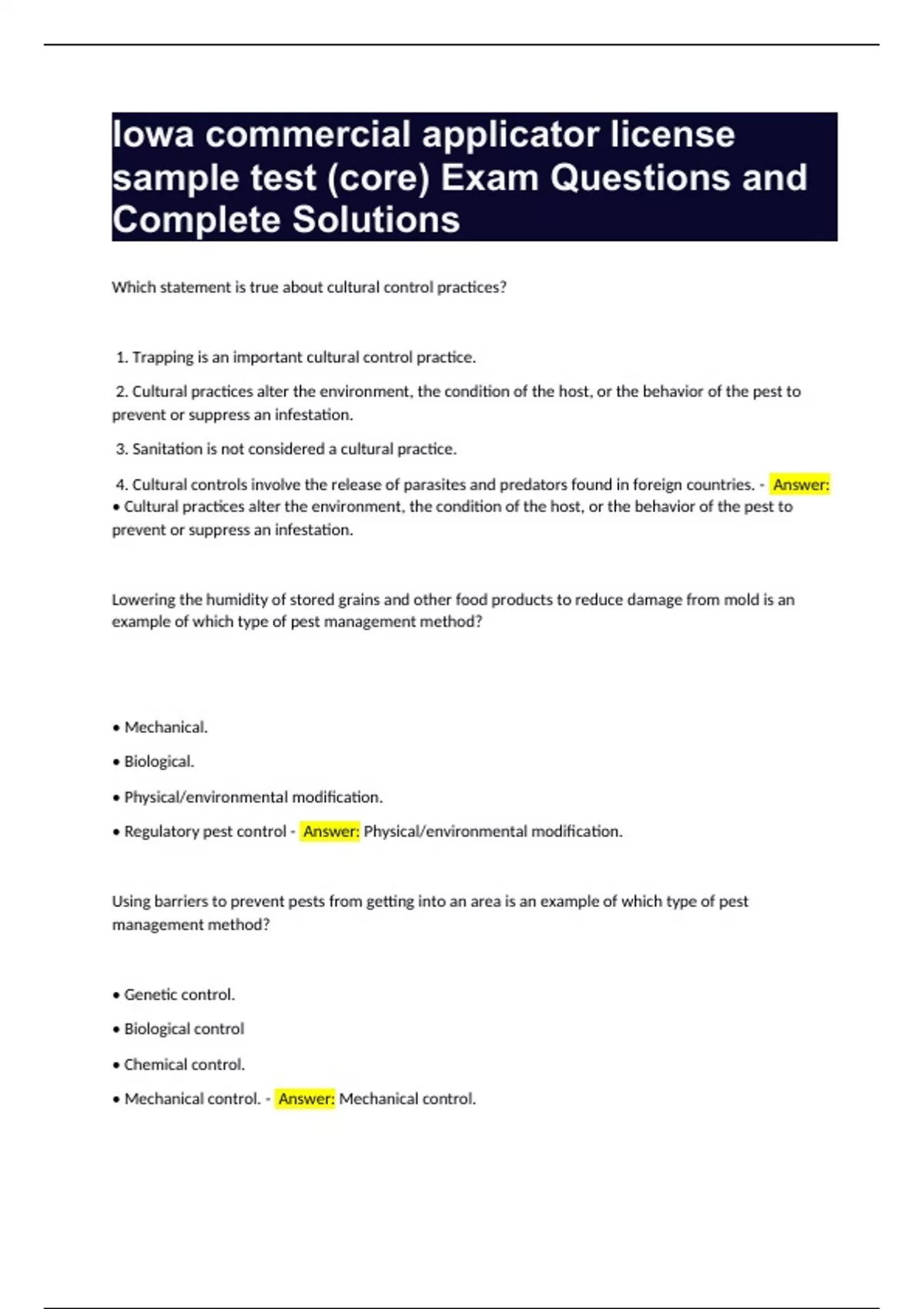 Pesticide Applicator Exam Questions and Complete Solutions Bundle Compilation Graded A+