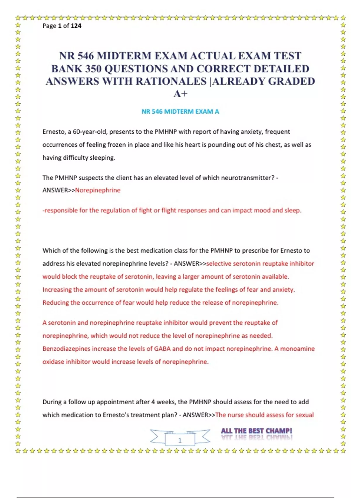 NR 546 MIDTERM EXAM PRACTICE & FINAL ACTUAL EXAM TEST BANK 1000 QUESTIONS AND CORRECT DETAILED ANSWERS WITH RATIONALES ALREADY GRADED A+