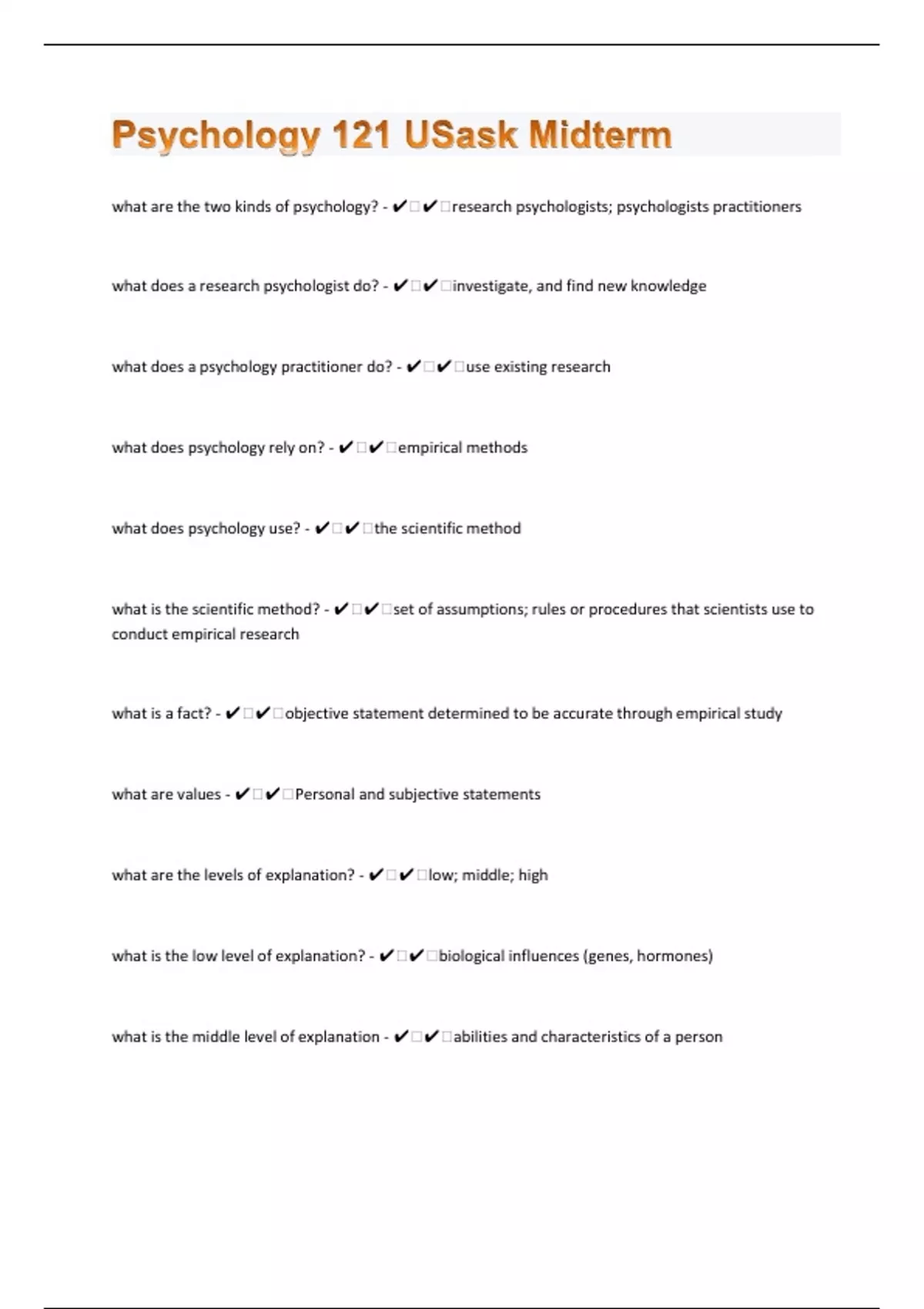 Psychology 121 USask Midterm |100 Review Questions Which Have Been Correctly Answered|A+