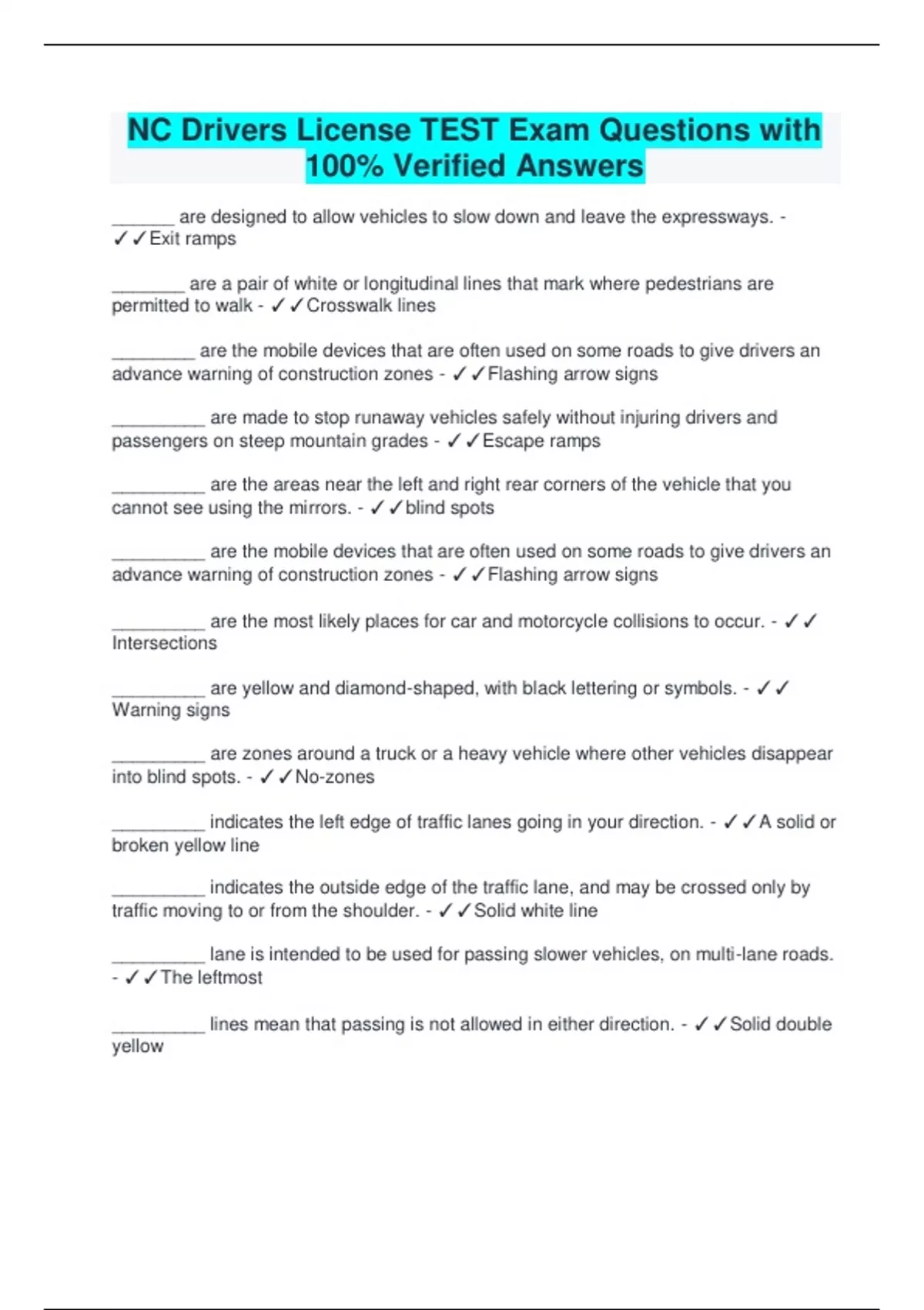 NC Drivers EXAM PACKAGE DEAL WITH 100% ACCURATE QUESTIONS AND ANSWERS